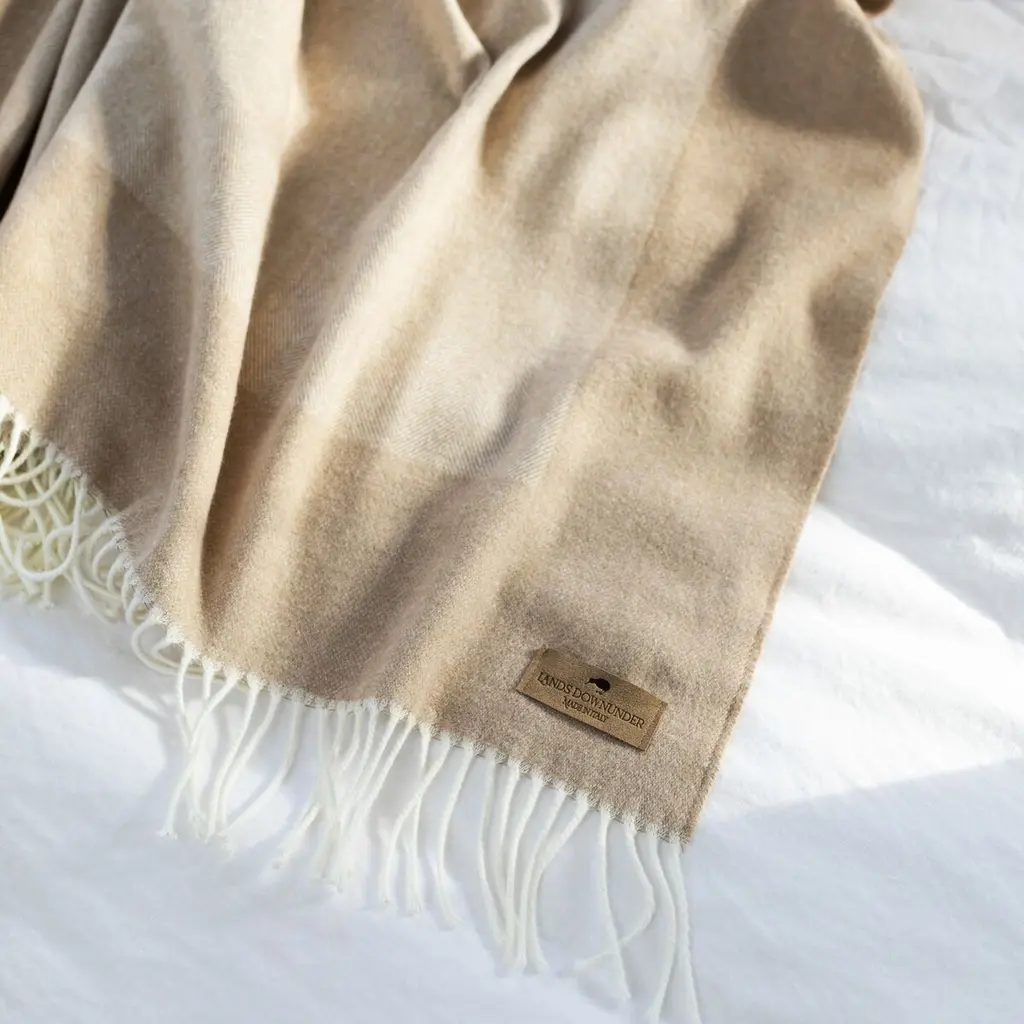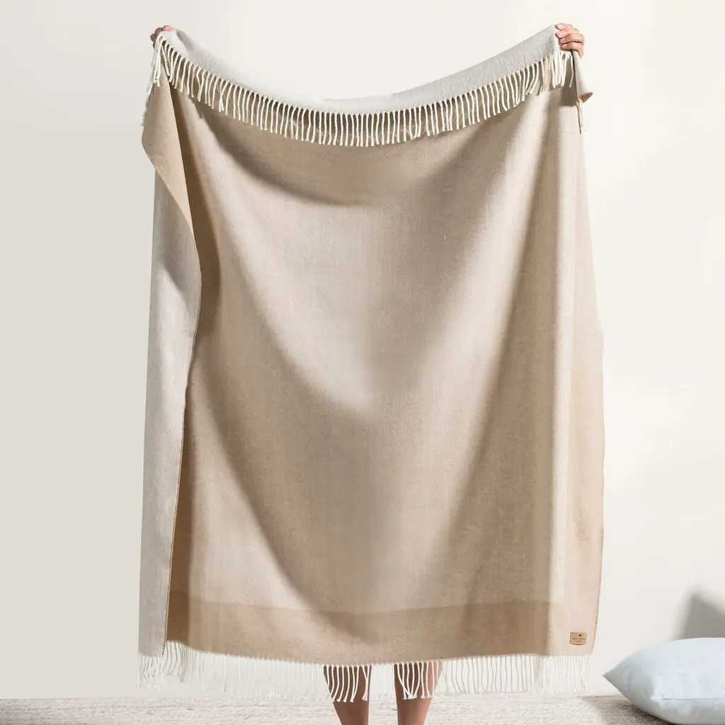 Crafted in Italy with a herringbone weave, this cashmere-soft cotton-blend throw features a light gray ground and a darker gray border, accented with lush fringe. It's ideal for draping over a sofa, folding at the foot of the bed, or tossing over your shoulders on a chilly evening or in an overly air-conditioned space.