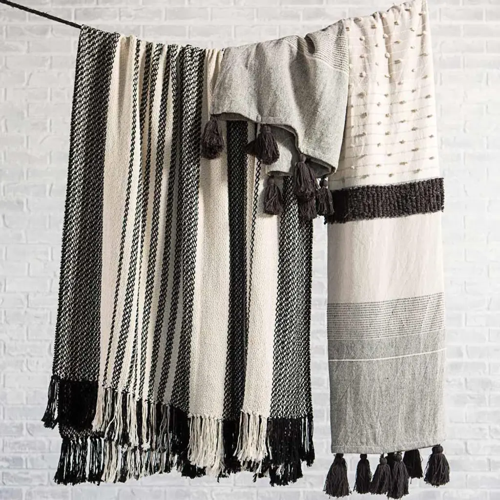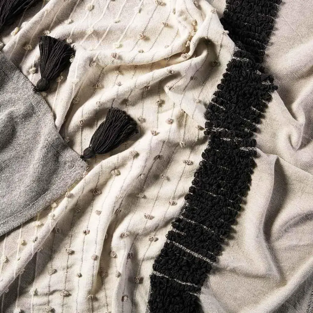 Brody Global Grey Patterned Ivory Cotton Throw Blanket