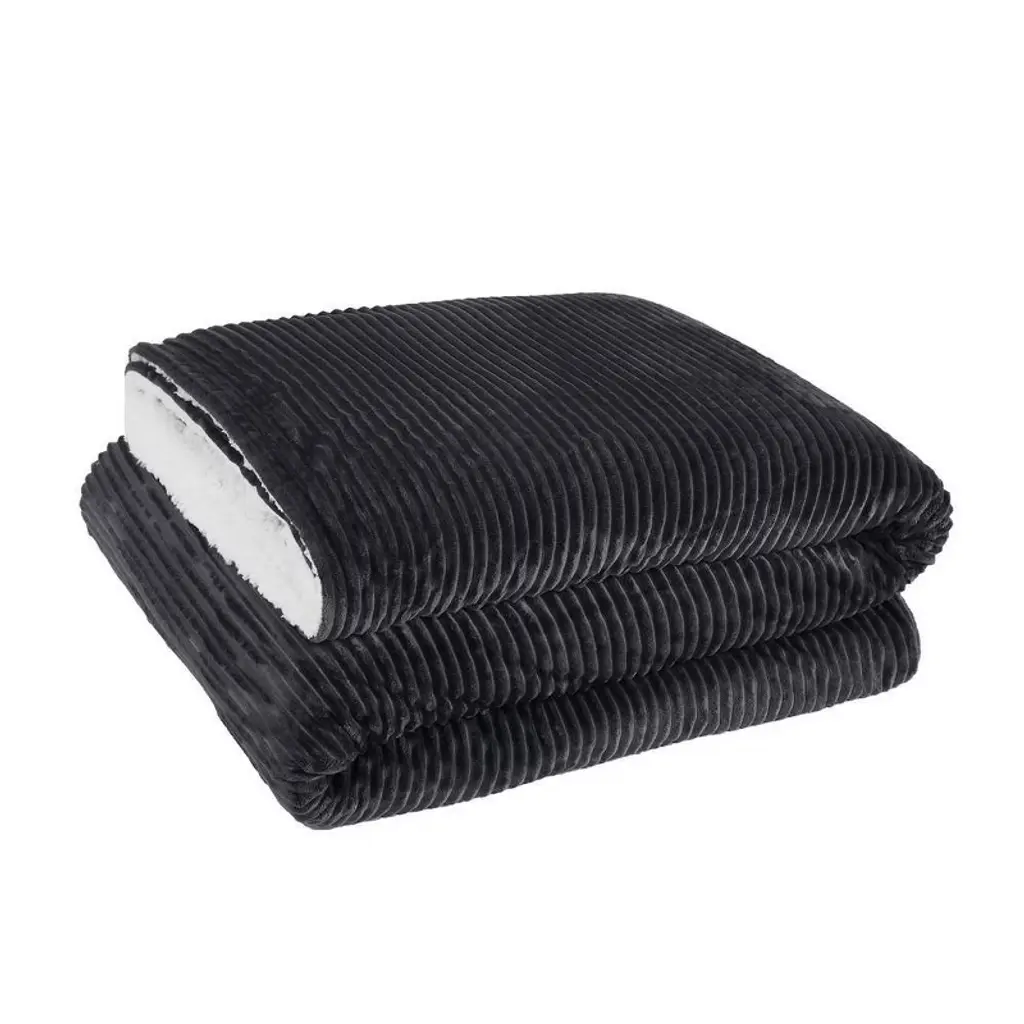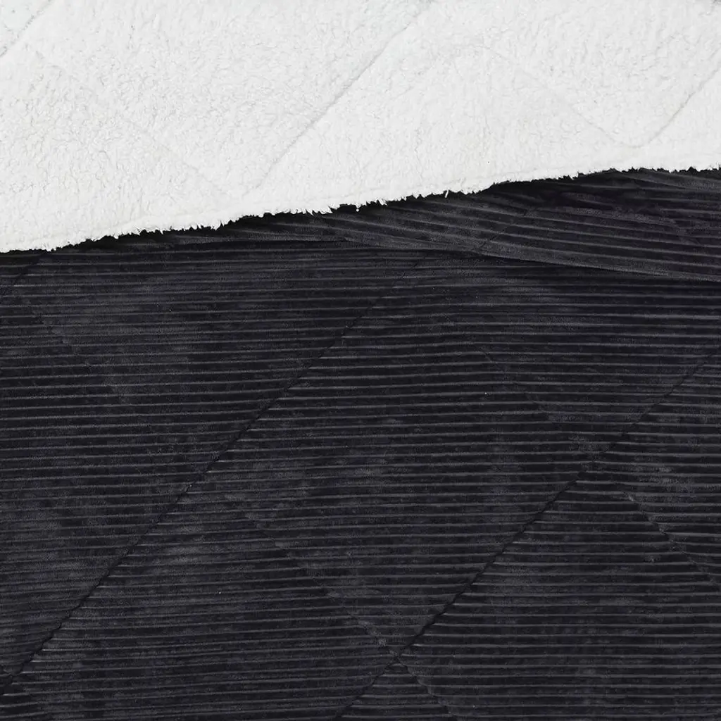 Amazing feel and a contemporary looking larger corduroy face fabric brings a new vibe to your living room. Includes: one throw 50x70 inches. Face is 100% polyester plush fabric with a carved corduroy pattern that reverses to 100% polyester teddy plush fabric. This item is machine washable, but please be sure to use appropriate sized machinery to avoid any excess wear on the items.