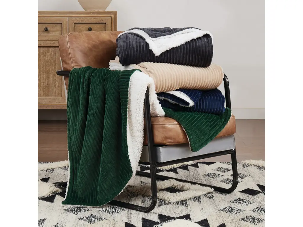 Update your bed with our super soft and textured bed blanket, designed to keep you warm on cold nights while adding a stylish touch to your decor. The front features a large corduroy pattern crafted from ultra-soft polyester plush fiber, while the reverse side is made from 100% polyester ivory sherpa material. Rest assured, this product is made responsibly and holds the OEKO-TEX Standard 100 Certification.