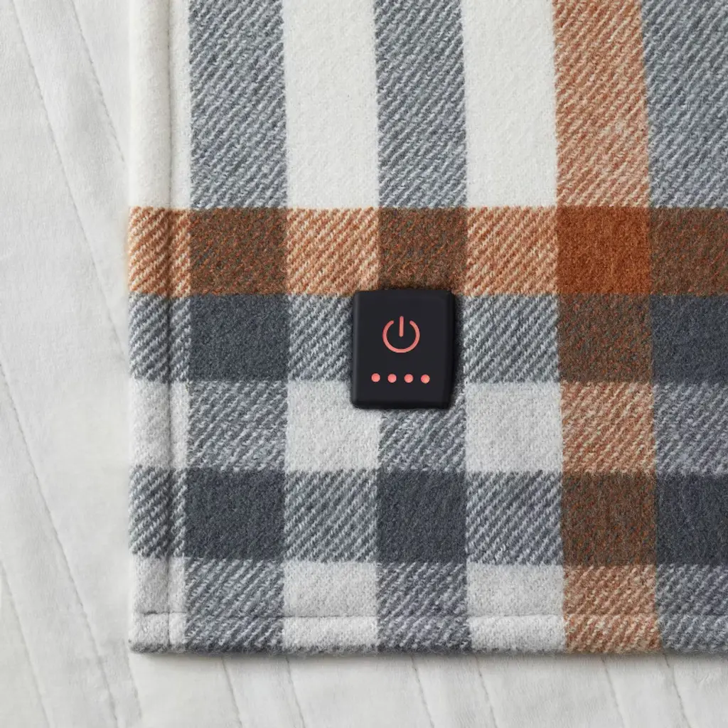 Brookstone Heated Oversized Brushed Woven Knit Throw Multi Plaid