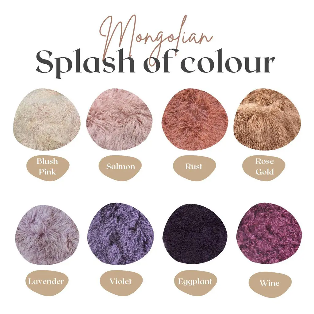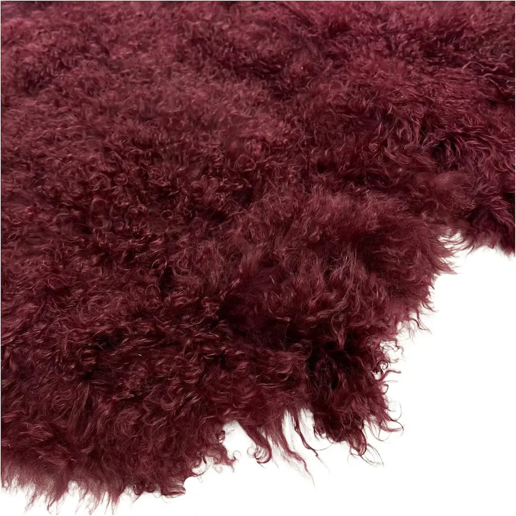 Enchanting and irresistible softness this burgundy red fur rug translates modern and stylish design paralleled with an expression of natural signature living. Featuring an eclectic wine color, enhancing the natural beauty of the Mongolian sheepskin used. Creating a subtle display of soft texture complimenting the fur like qualities that this Mongolian fur rug has to offer. With is enchanting tactile elements will uplift any room's interior with charm and charisma. Versatile in design, this piece can be styled as a fur floor rug or as a fur throw that drapes effortlessly over any bed or sofa.Designer Emily Barbara creates with a philosophy of sustainability using all-natural products in her designs. The Australian-made throw rug is handcrafted using intricate and meticulous furrier techniques from carefully sorted and high-quality Mongolian / Tibetan sheepskin. Carefully selected Tibetan lambskin, (also known as Mongolian sheepskin), hand-crafted together creating a uniform flow and enhancing the fullness of each individual piece made.Preserving the shape of each sheepskin used, each purple throw rug carries its own organic and natural curved shape, making each piece that is made unique.The Mongolian sheepskin rug features fur-like qualities and comes unlined, with exposed stitchwork and skin/leather underside. This beautiful Mongolian fur throw rug collection is available in a range of different sizes and shapes in a range of color choices to suit a myriad of interior spaces.Features:Mongolian SheepskinColour: BurgundyUnlinedNatural organic shapeDimensions 170cm x 110cm with woolWool pile: approx 2 - 3 cmWool length: 5 to 10cmMade in Australia Product care for your Fur rug:Keep away from direct sunlight to prevent color damageProfessional dry cleaning onlyDo not wash or submerge into waterShake out often to remove dust or give a light vacuumSpot clean only with gentle wool detergent.Do not brush.Professional dry clean only.