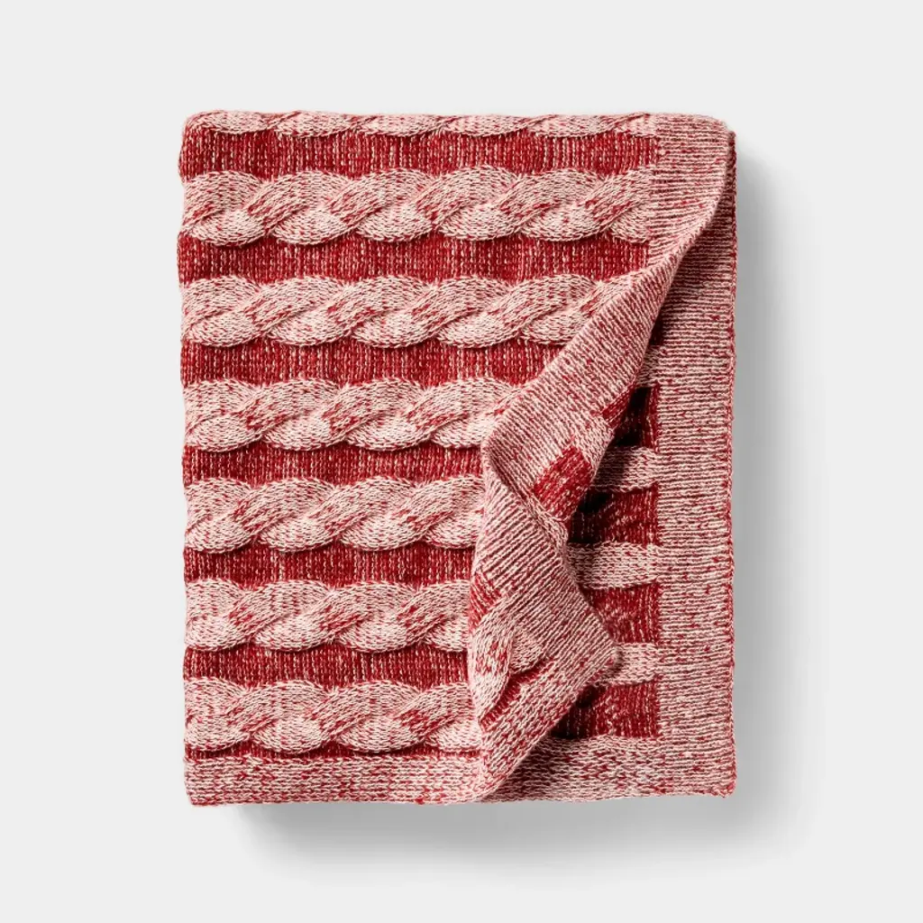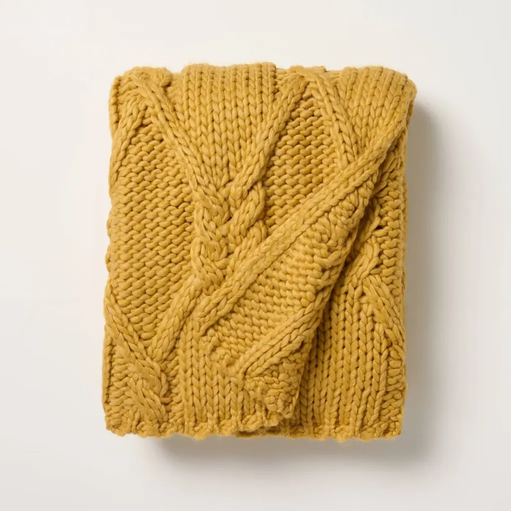 Get cozy while you curl up by the fire or kick back with a good book wrapped in this Cable Knit Throw Blanket from Hearth & Hand™ with Magnolia. The throw blanket features a cable knit woven pattern, offering a classic look that blends seamlessly with any decor style and color palette. It's made of heavyweight recycled polyester-blend fabric to feel comfortable as you wrap it around yourself. Toss it on a bed, couch or chair to keep it close at hand for whenever you need some extra warmth.Hearth & Hand™ with Magnolia: Gather • Create • Enjoy