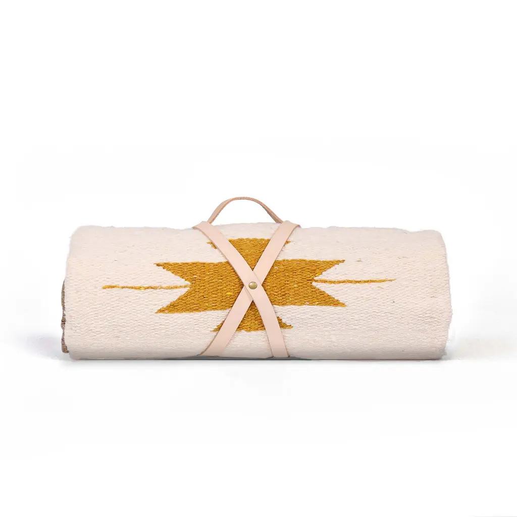 Bridging local craft traditions of their home country of Mexico and their current home of California, the mother and daughter duo behind Caminito creates modern takes on traditional blankets and more. Inspired by the diverse landscape of California, the handwoven Horizonte is ready to come along on park hangs and camping thanks to an included leather strap.