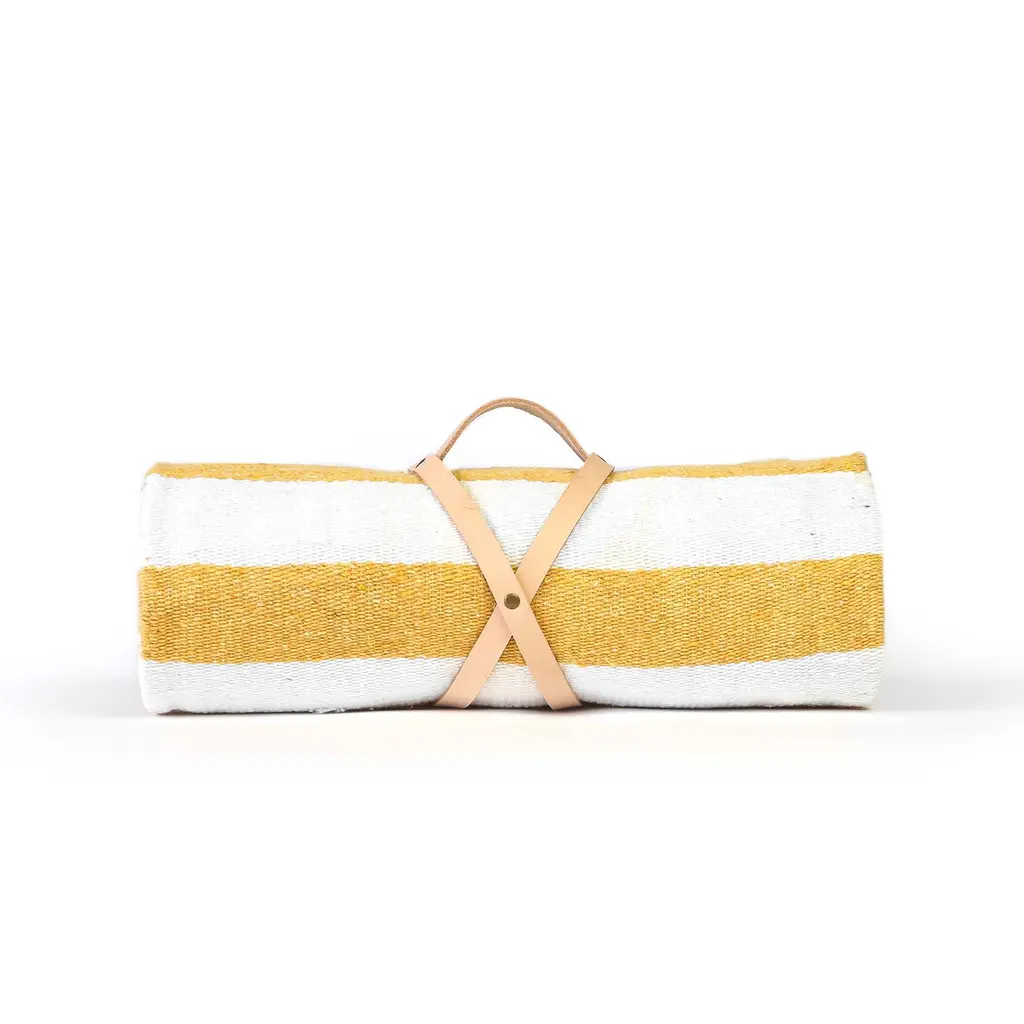 Bridging local craft traditions of their home country of Mexico and their current home of California, the mother and daughter duo behind Caminito creates modern takes on traditional blankets and more. Inspired by the rising and falling tides, the handwoven Marea is ready to come along on beach days and park picnics thanks to an included leather strap.