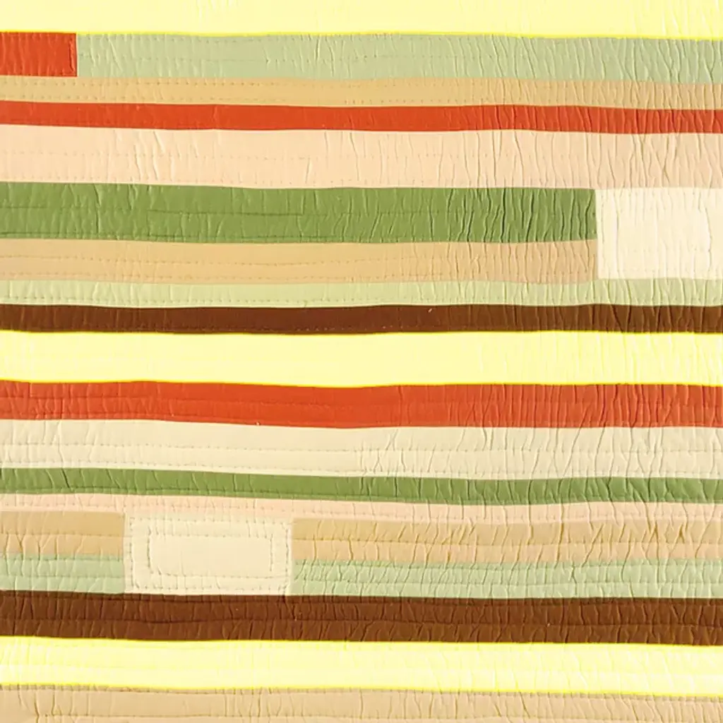 Rest in the rustic comfort of the great outdoors. Perfect for the outdoorsman, the Harmony Dream throw features a muted fall color way of taupes, greens, browns, and rust striped patterns. Pieced together by hand, this throw features intricate stitched detail lending a rustic, homemade feel to your lodge or cabin decor. Made of 100% cotton, throw is machine washable for easy care.