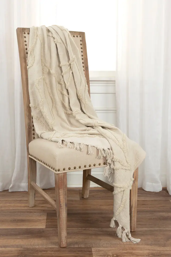 This simply chic 50" x 60" woven throw is a subtle work of art that effortlessly blends contemporary and traditional styles to elevate the look of any space.