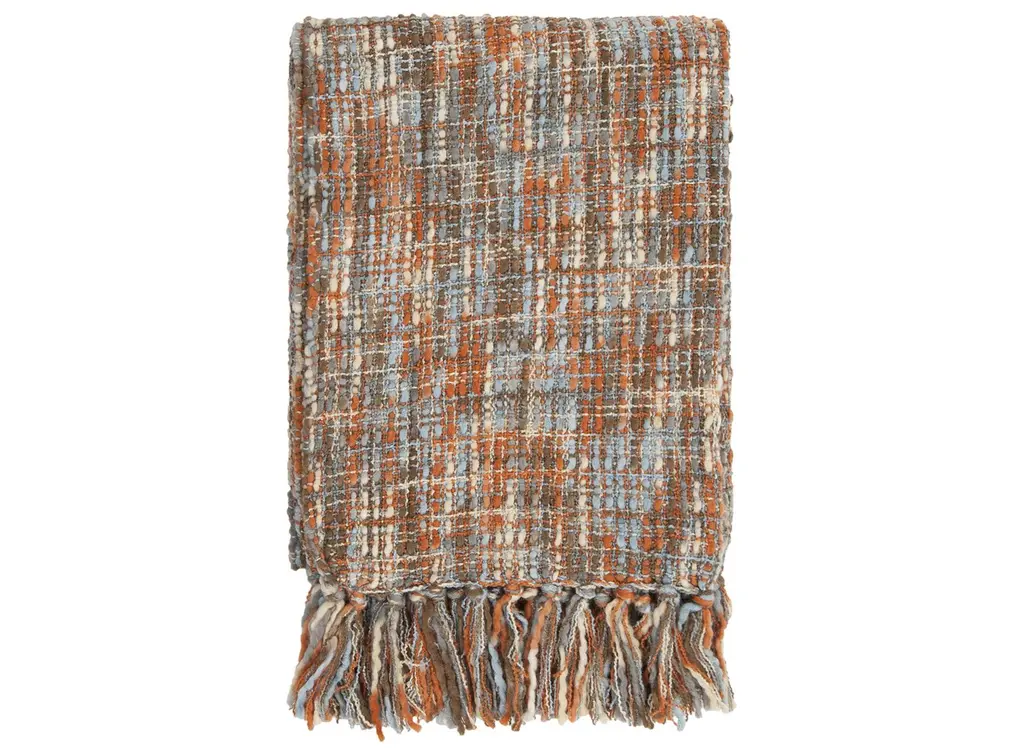 The handwoven stripes on this multicolored throw create a fascinating interplay of hues and textures. Rows of muted olive, mustard, red, blush, blue and orange pop when juxtaposed with cream, grey and black stripes, all highlighted with a bit of rose gold thread. The fringes on opposite ends of the blanket reveal all the threads that have come together to create the beautiful and cozy finished product. By Crate&Barrel.