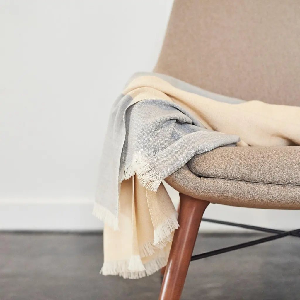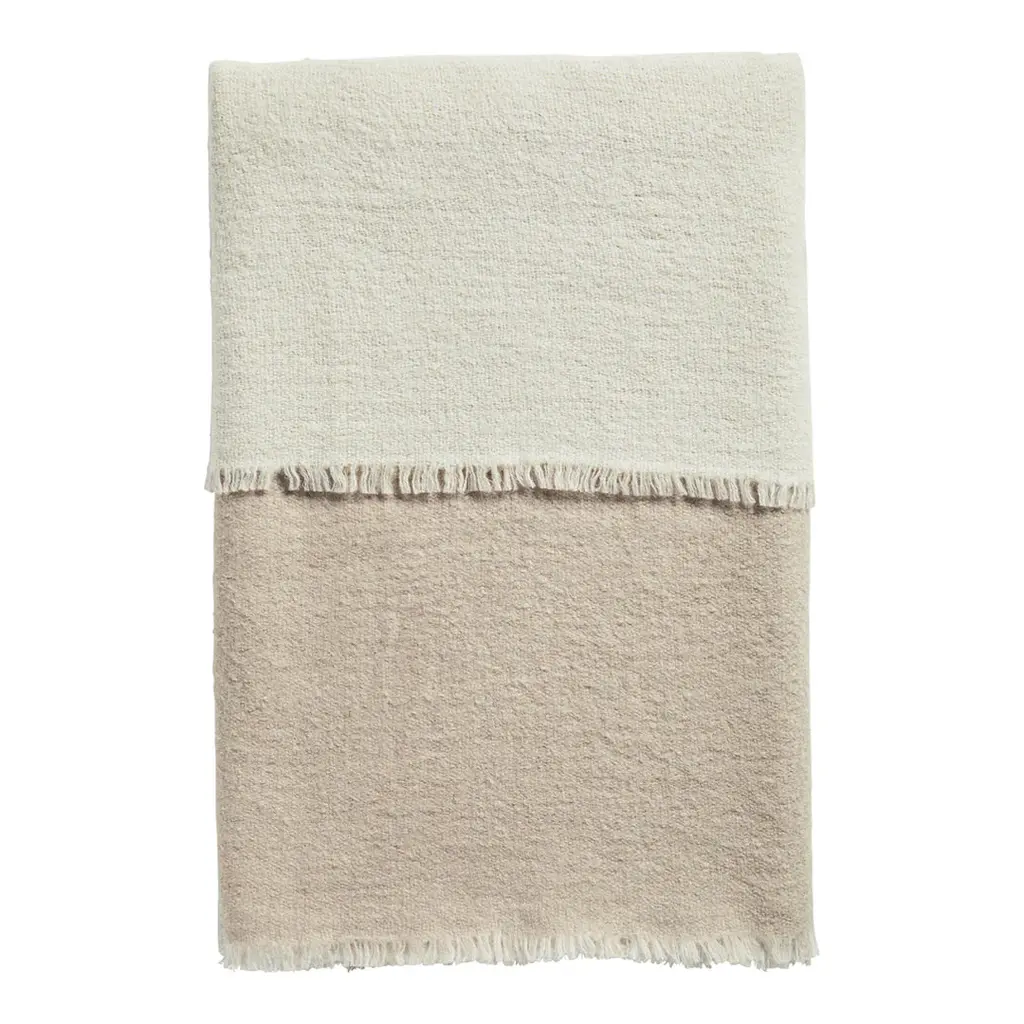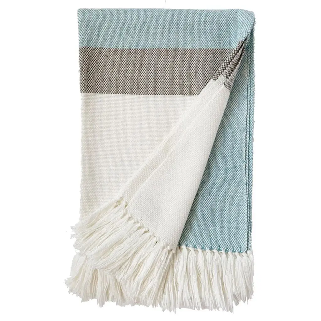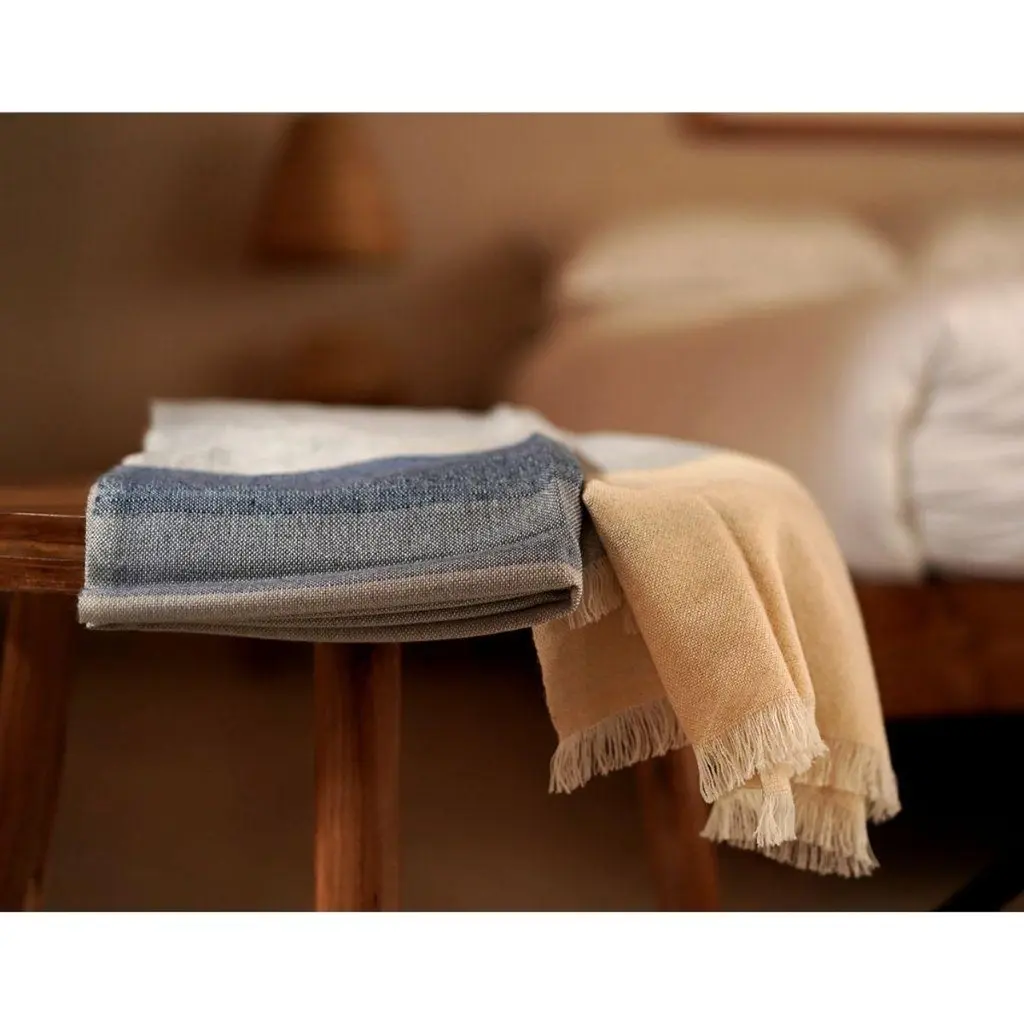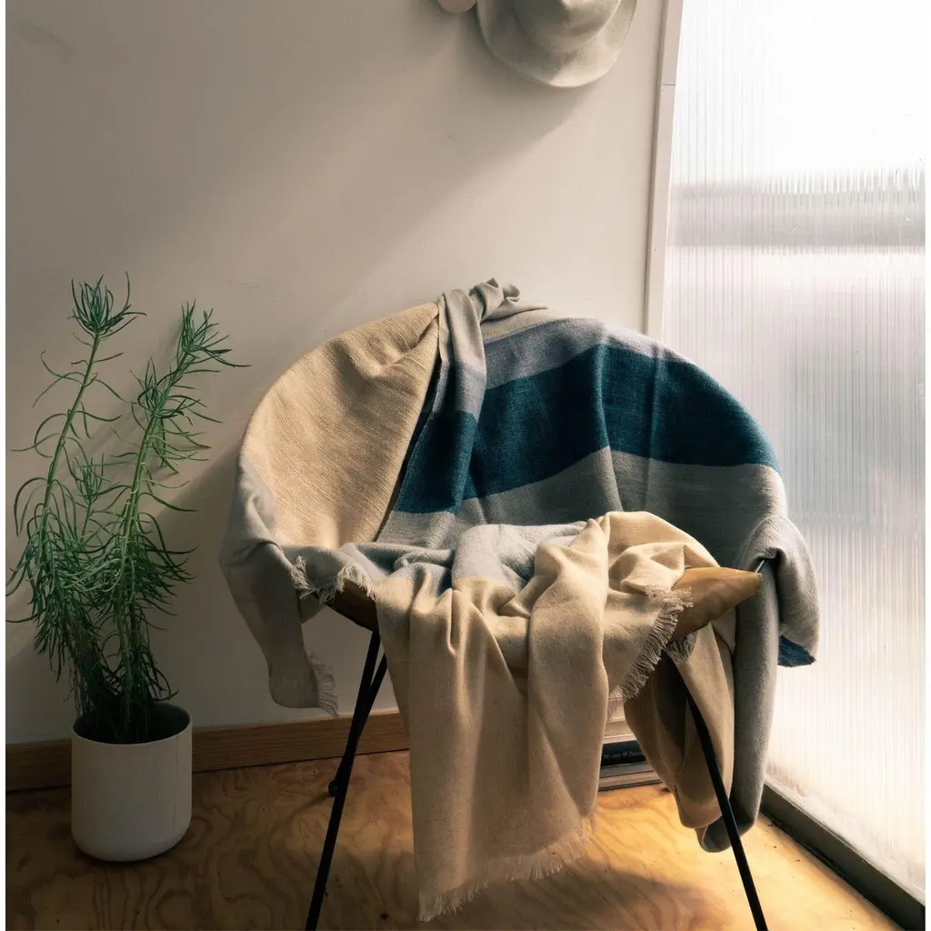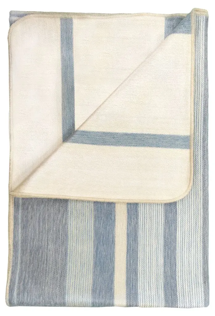 Ceru Handloom Merino Throw / Blanket In Neutral Shades Of Cream & Serene Blue