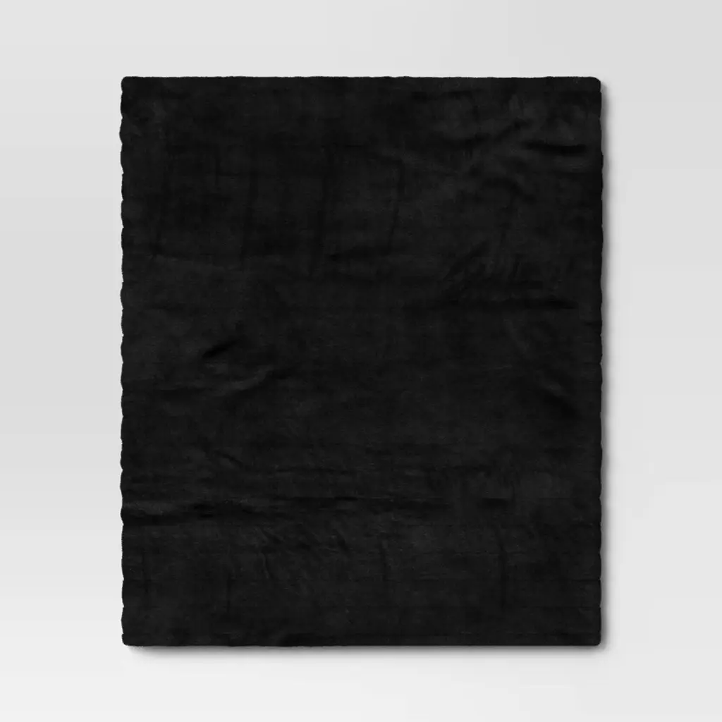 Fill your living space with cozy charm with this Channel Faux-Fur Throw from Threshold™. Featuring a soft, plush faux-fur exterior in a black color, this ultra-soft throw blanket offers cozy and comfortable use. A practical yet attractive addition to your couch, chair or loveseat, this channel faux-fur throw is perfect for wrapping yourself in luxury while relaxing, reading or watching TV.Threshold™: Looks like home, feels like you.