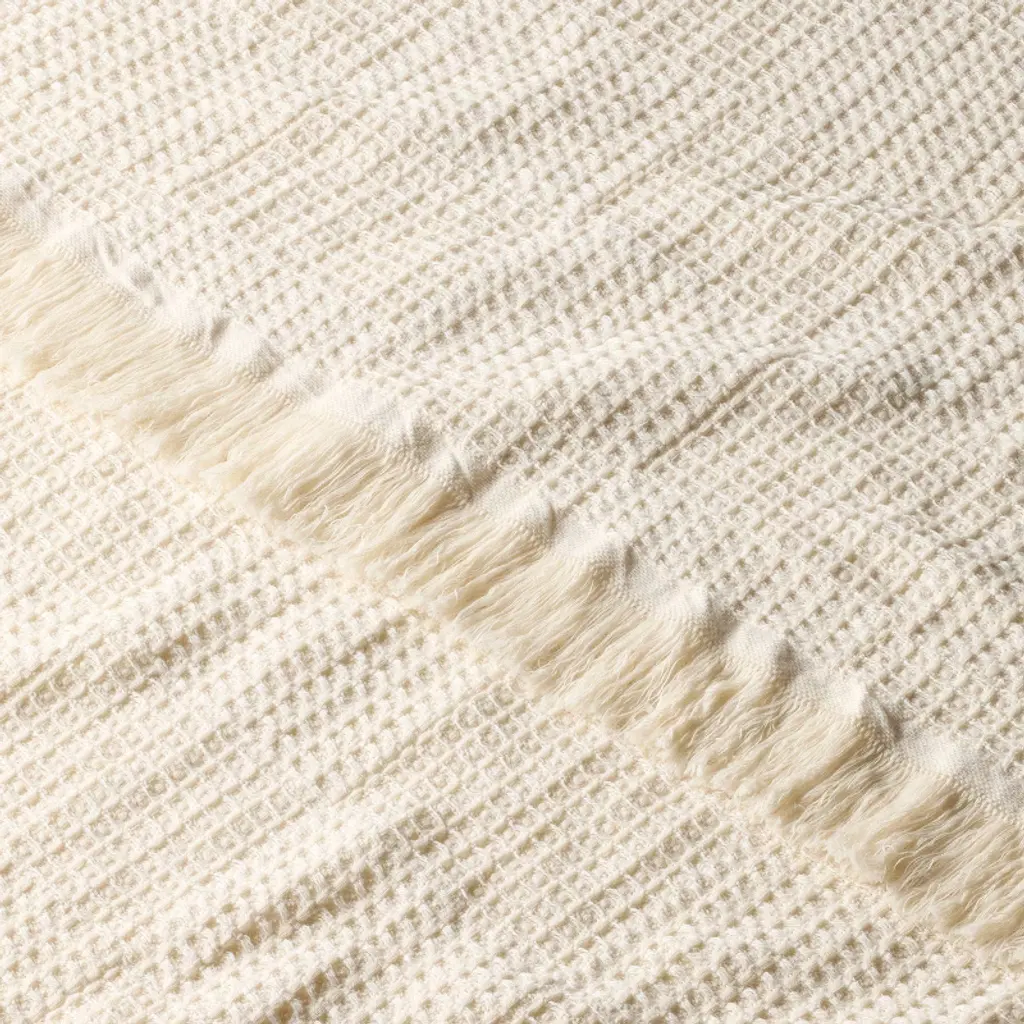 Add elegance and warmth to any space in your home with this Checkered Knit Throw Blanket from Hearth & Hand™ with Magnolia. This throw blanket showcases a checkered knit design in a sour cream hue with fringed edges for a lovely look that blend effortlessly with any decor style. Made from cotton-linen blend jacquard fabric, this knitted blanket is super soft to touch and perfect for snuggling up on chilly nights, and it's also machine washable for easy cleaning.Hearth & Hand™ with Magnolia: Gather • Create • Enjoy