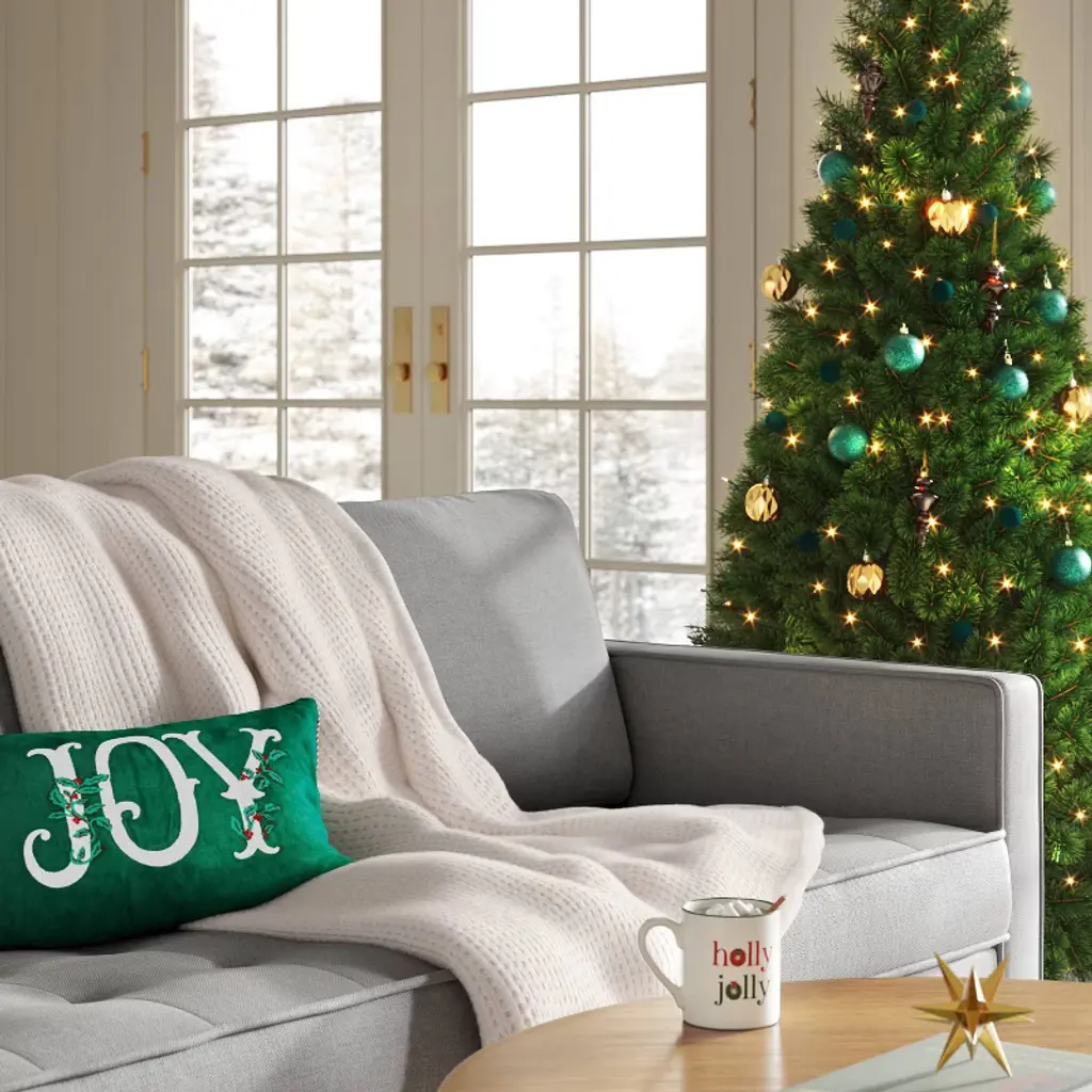 Layer warmth into your living space with this Chenille Knit Throw Blanket with Faux-Shearling Reverse from Threshold™. This rectangular throw blanket measuring 60 by 50 inches showcases a chenille top with waffle-knit texture and a faux-shearling reverse, and it's finished with hemmed edges for a neat look. Made from 100% recycled polyester fabric, the midweight throw blanket is also machine washable for effortless cleaning.Threshold™: Looks like home, feels like you.