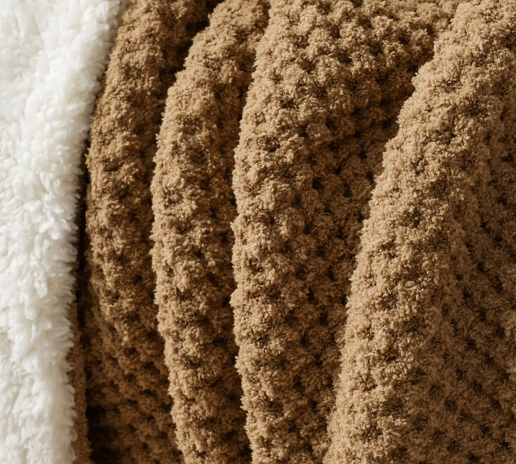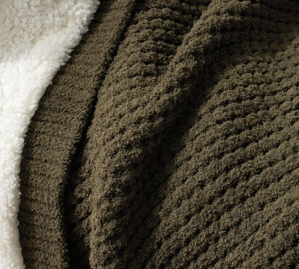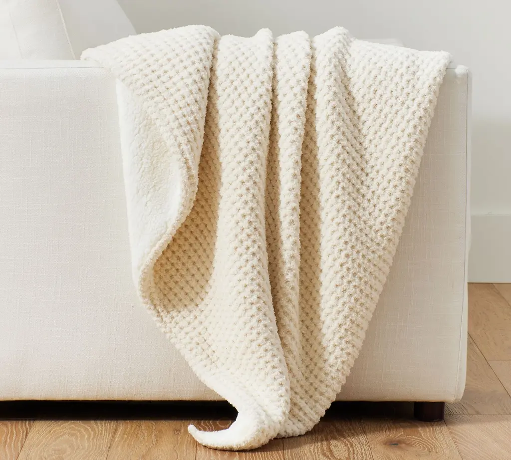 Drape your sofa or bed in the comfiest duo imaginable. Thick, waffle knit chenille is backed by irresistibly soft sherpa, making this the throw you’ll reach for time and time again.