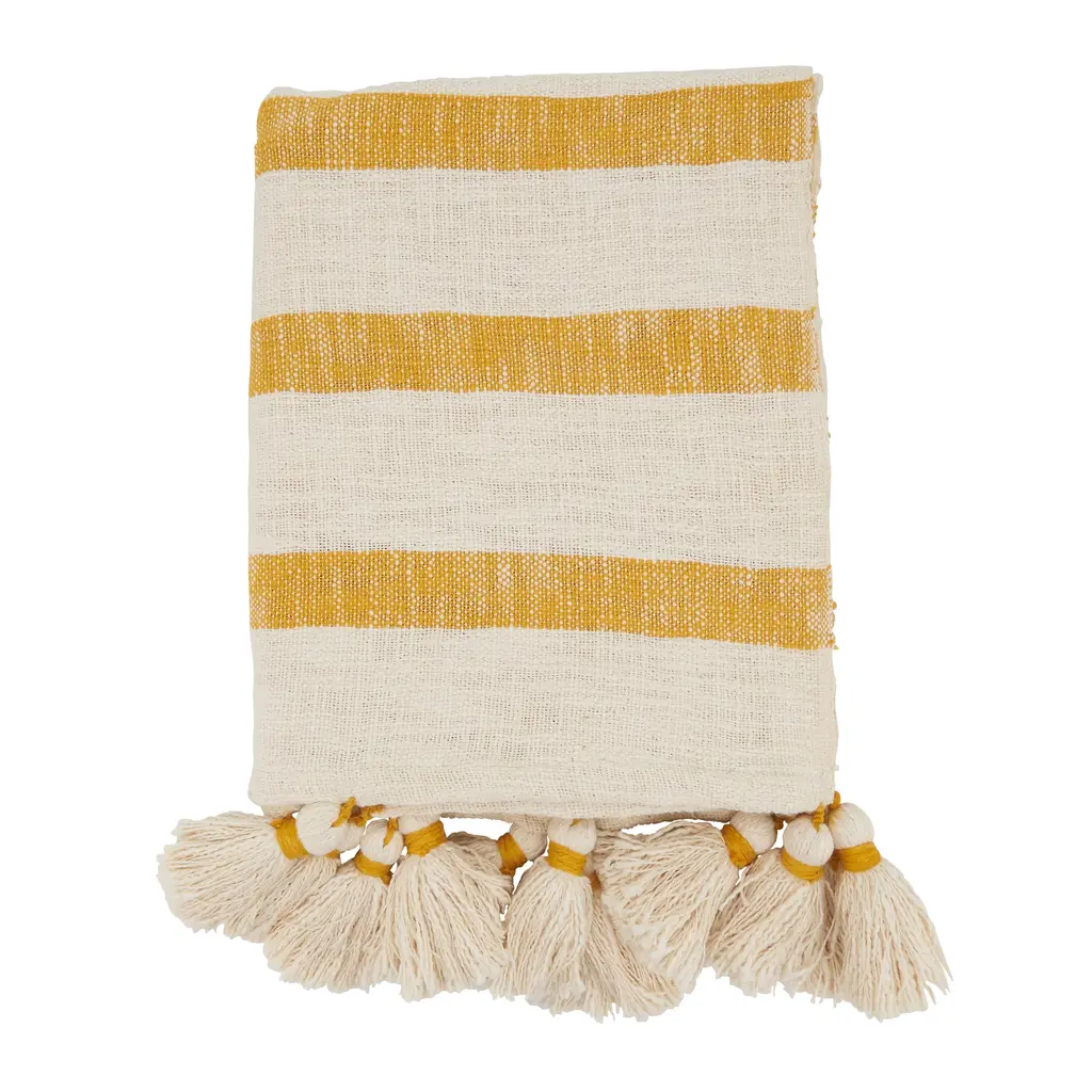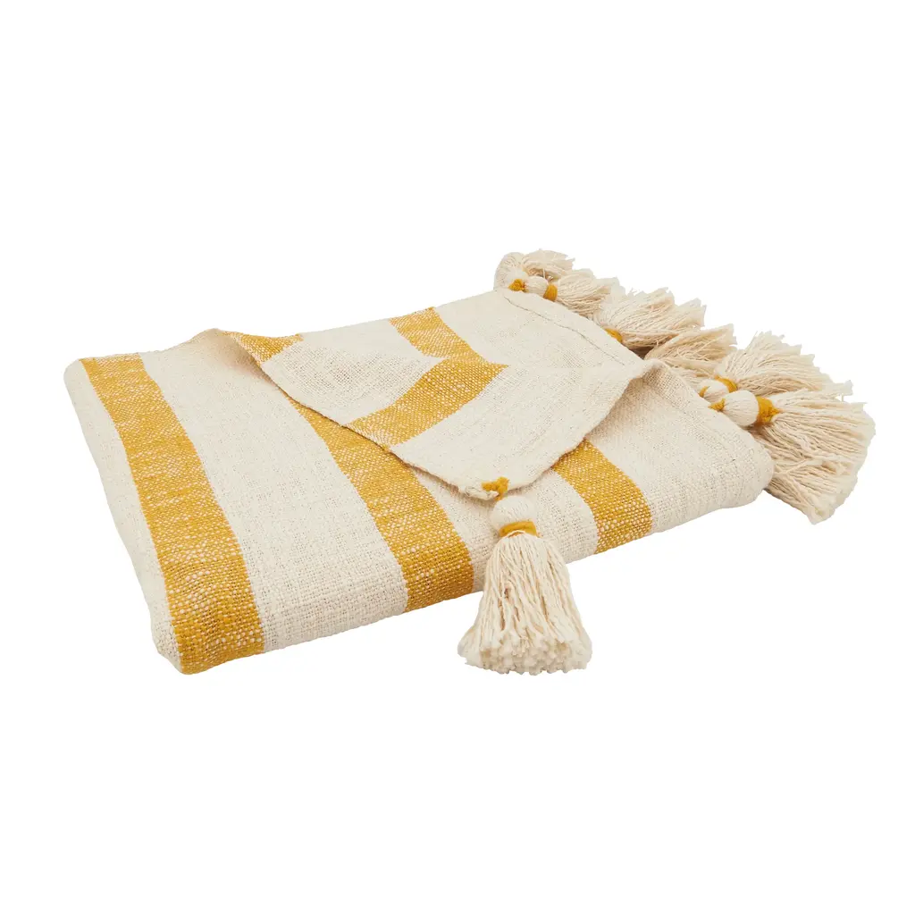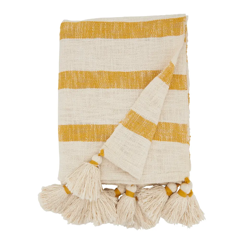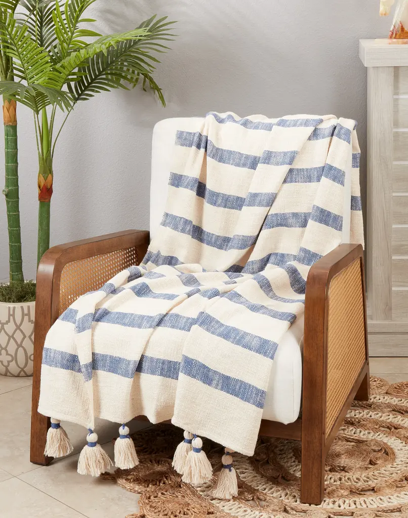 Upgrade your home decor with this Stripe Tassel Throw Blanket. The stylish stripes and elegant tassels give it a sophisticated look, while the soft fabric ensures maximum comfort. Whether you're curling up with a good book or adding a decorative touch to your living space, this high-quality throw is the perfect choice.