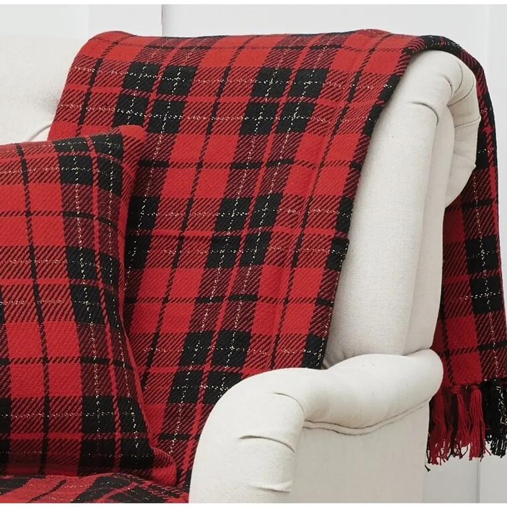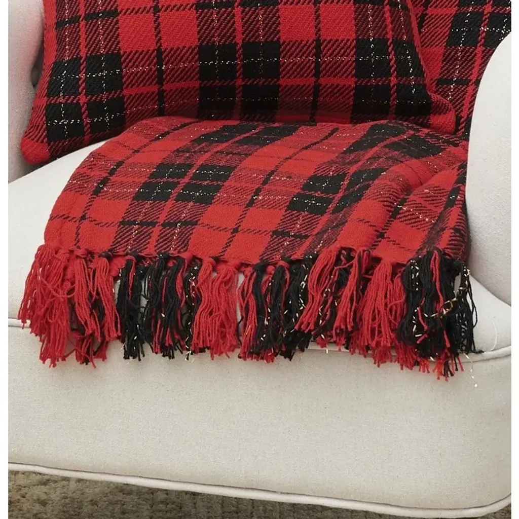 The traditional woven red and black plaid of this decorative throw gives the room a classic cozy style and will help complete your lodge theme, your winter holiday décor, or your comfortable everyday look.