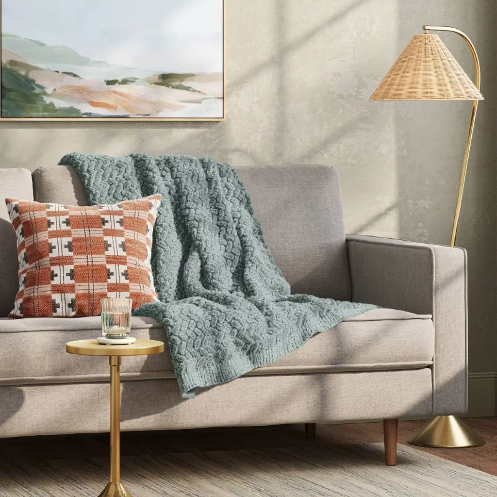 Add an extra layer of comfort to your favorite lounging spot with this Chunky Chenille Throw from Threshold™. The chenille throw blanket is adorned with a textured, knotted pattern for a modern look that blends effortlessly with any decor style. Made from recycled polyester chenille fabric for soft comfort, just toss it on your bed, sofa or chair to quickly grab and wrap yourself up when you're feeling chilly.Threshold™: Looks like home, feels like you.