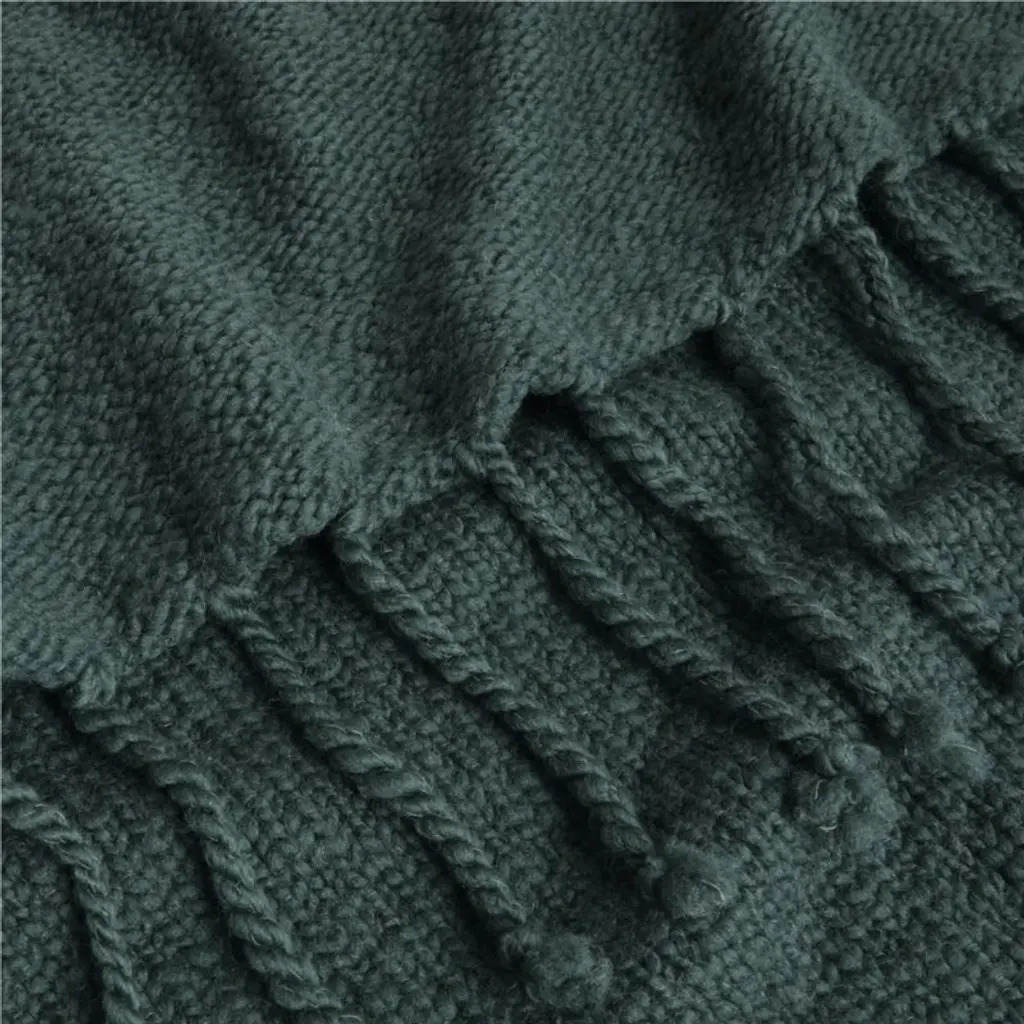 Chunky Wool Fringe Knit 70"x55" Spruce Green Throw Blanket