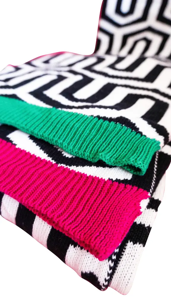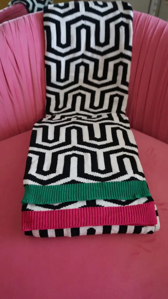 Inspired by Art Basel Miami, South Beach, and Miami's Wynwood Art District, Designer Christi Tasker created this "Peak & Valley" Extra Long Woven Geometric Throw that is soft, oversized, and super long. Drape it over the bottom of a bed or cuddle with this extra-long throw on the sofa, there's even enough to share with a friend. With an extra-long throw length of 96" long x 48" wide or 4ft x 8ft. Perfect for draping on the foot of the bed or using daily as a sofa throw. Measures - 48"W x 96"L - 4' x 6" 30.4 × 10.1 × 45.7 cm Color Shown here: Raspberry Pink Available in Raspberry or Kelly Green. Machine wash on delicate without any other items in the washing machine to prevent peeling. Hang to dry.