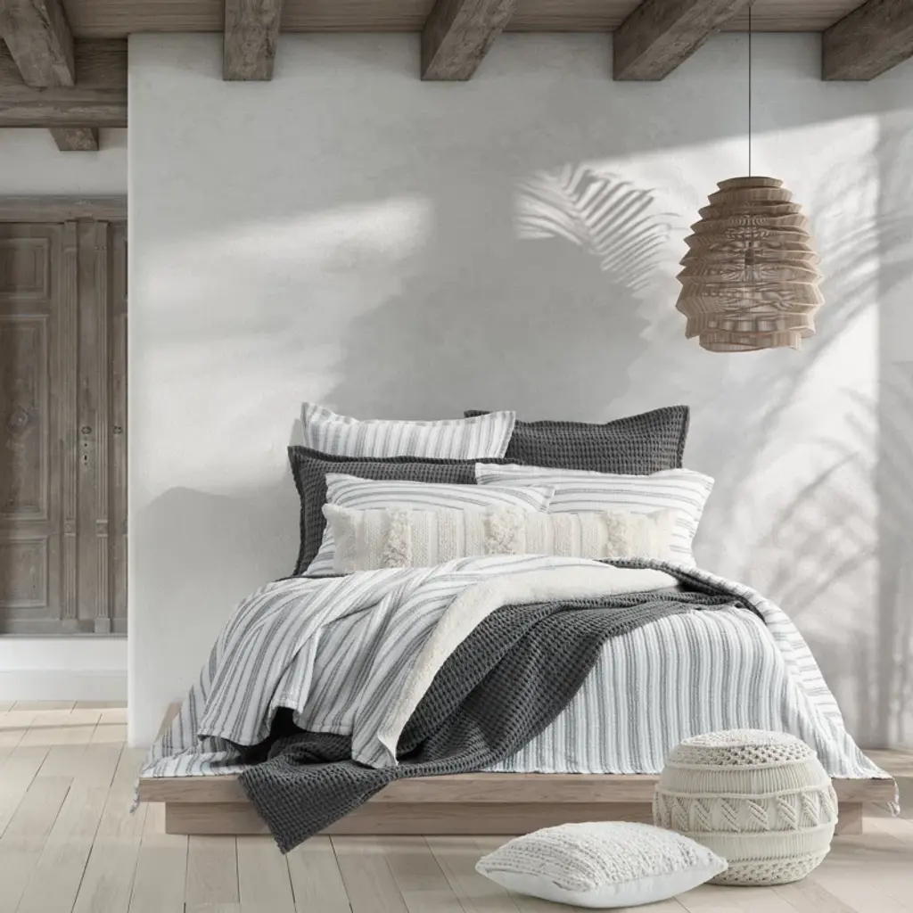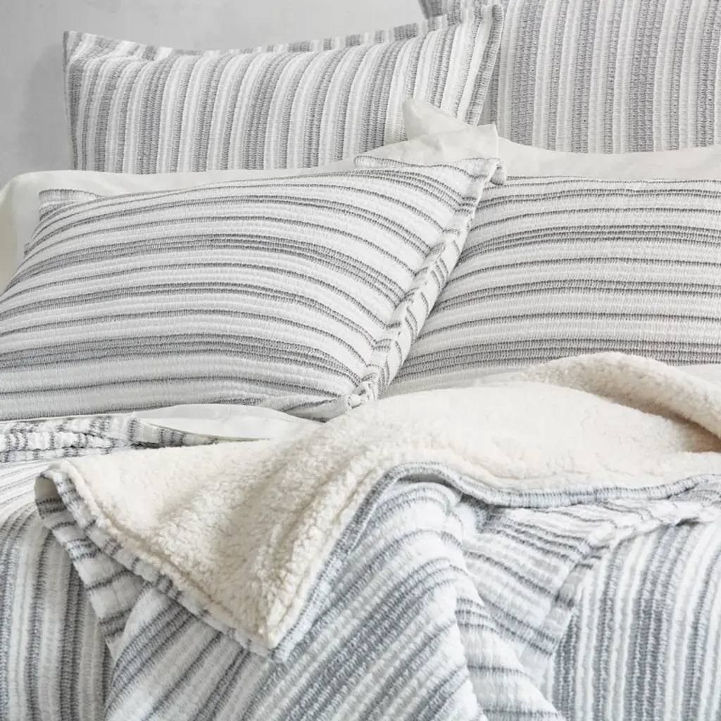 Crafted in Portugal from exceptionally fine cotton yarns, the throw offers beach-inspired indulgence and incredible comfort. Featuring a heavyweight construction, this plush throw blanket is uniquely woven with a soft crinkled texture with a warm sherpa reverse. Add this stylish plush throw as a gorgeous neutral layer to your sofa.