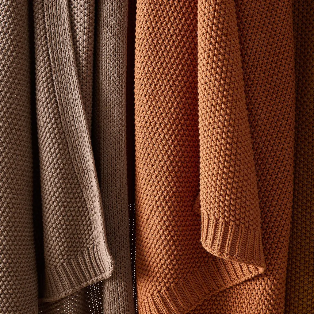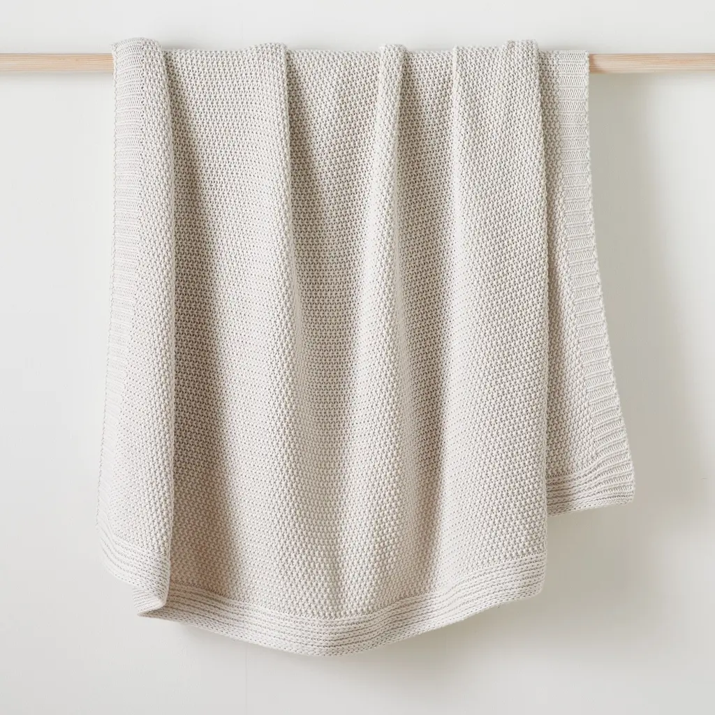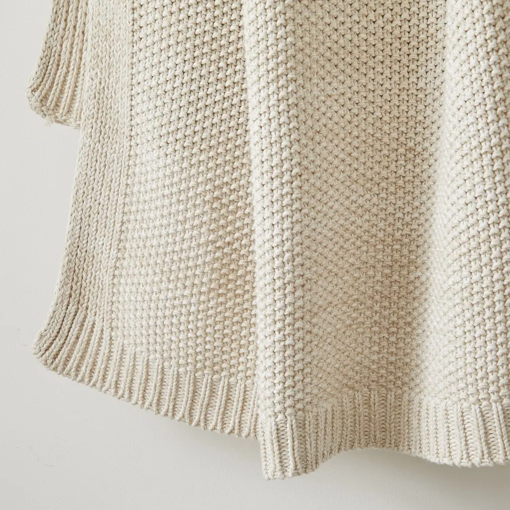 Woven seed stitch for ultra soft, cozy texture. Mid-weight to keep warm any time of year. Made of 100% breathable, long-lasting cotton.