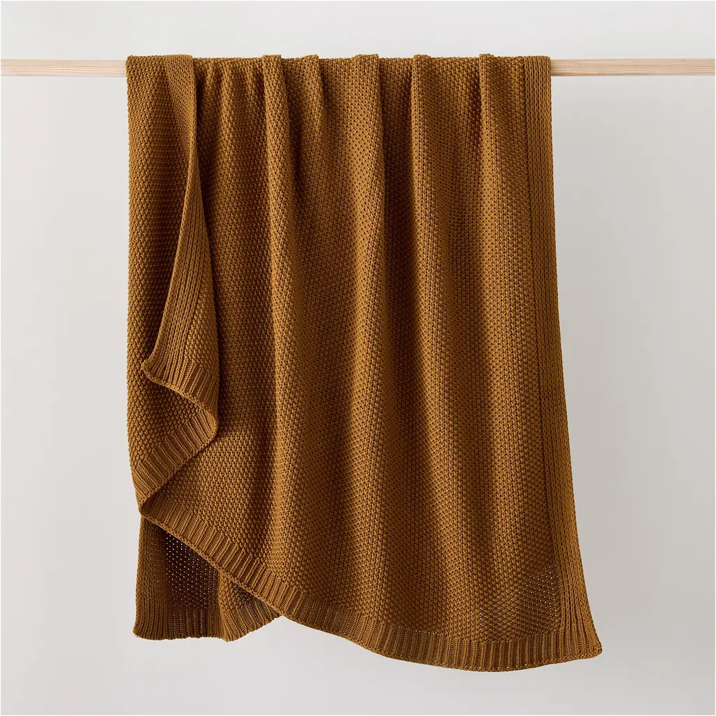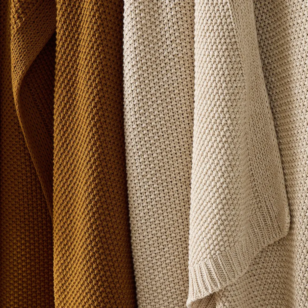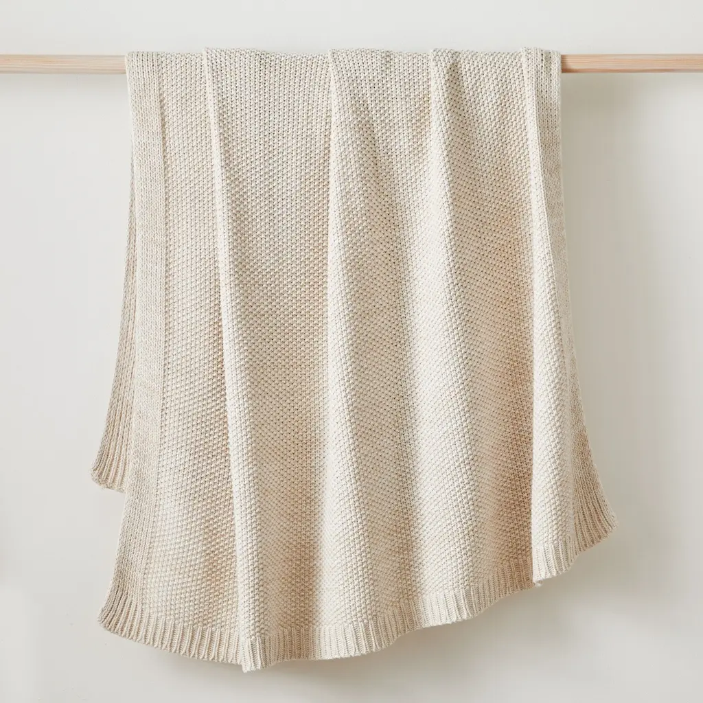 Woven seed stitch for ultra soft, cozy texture. Mid-weight to keep warm any time of year. Made of 100% breathable, long-lasting cotton.