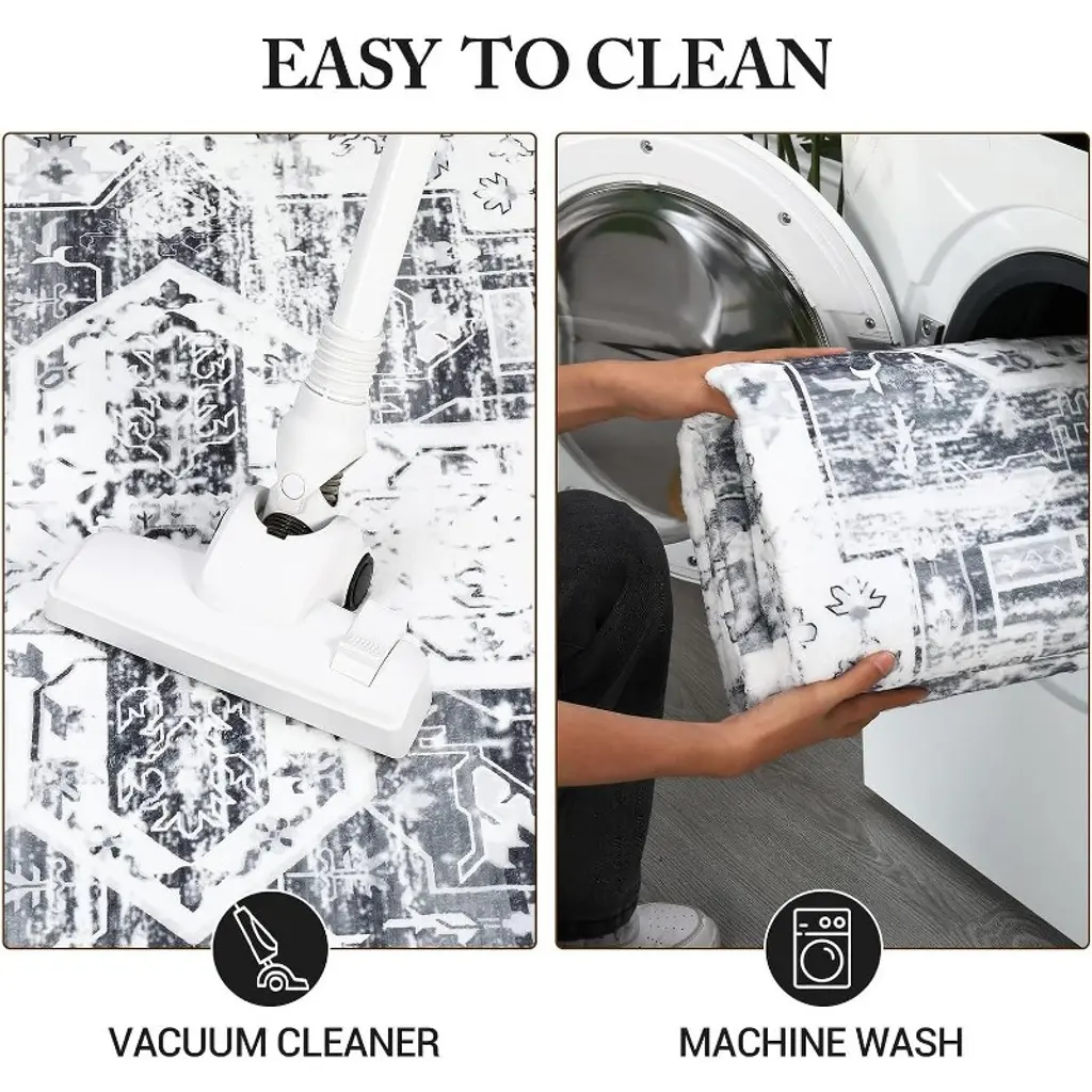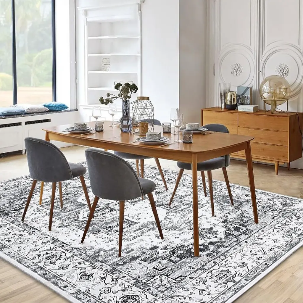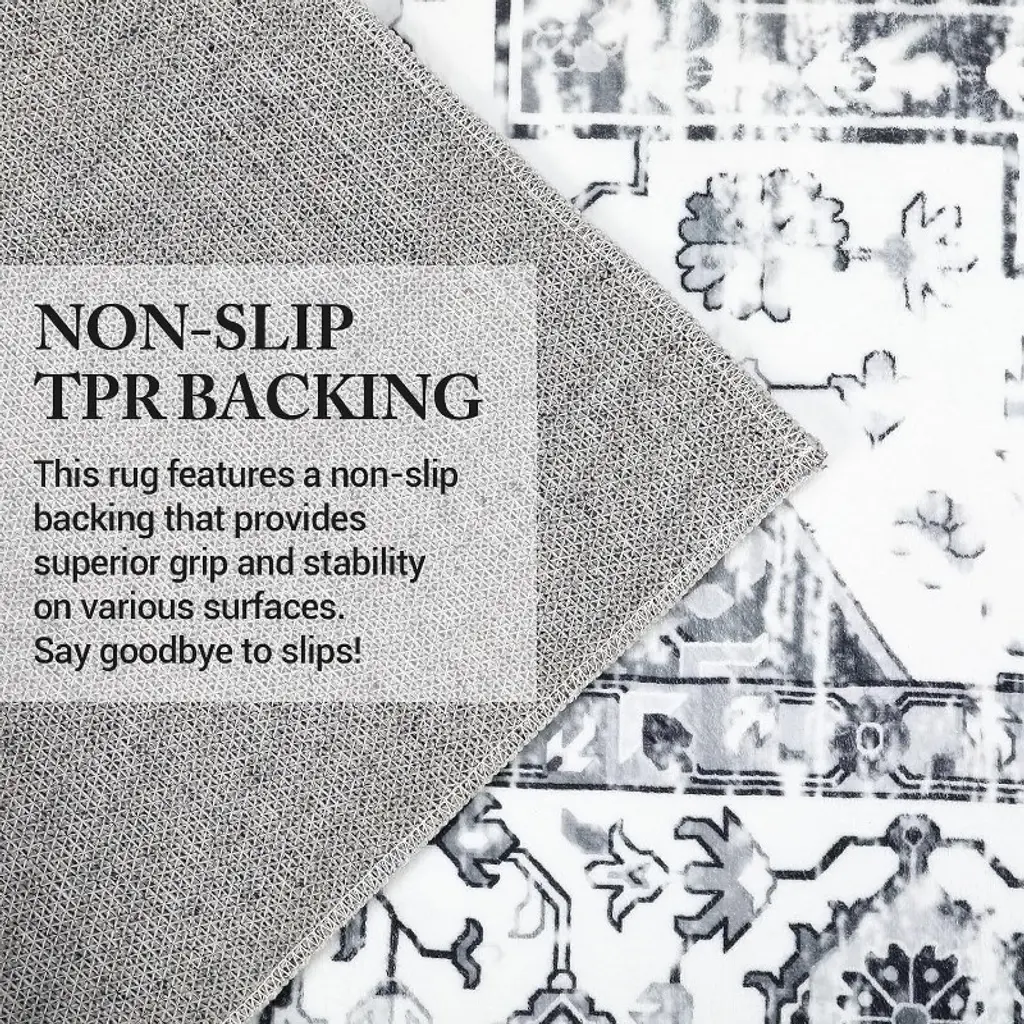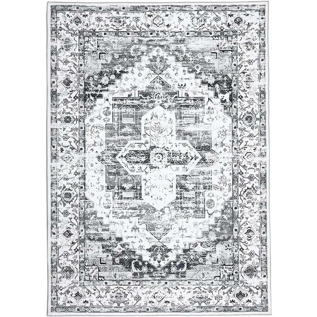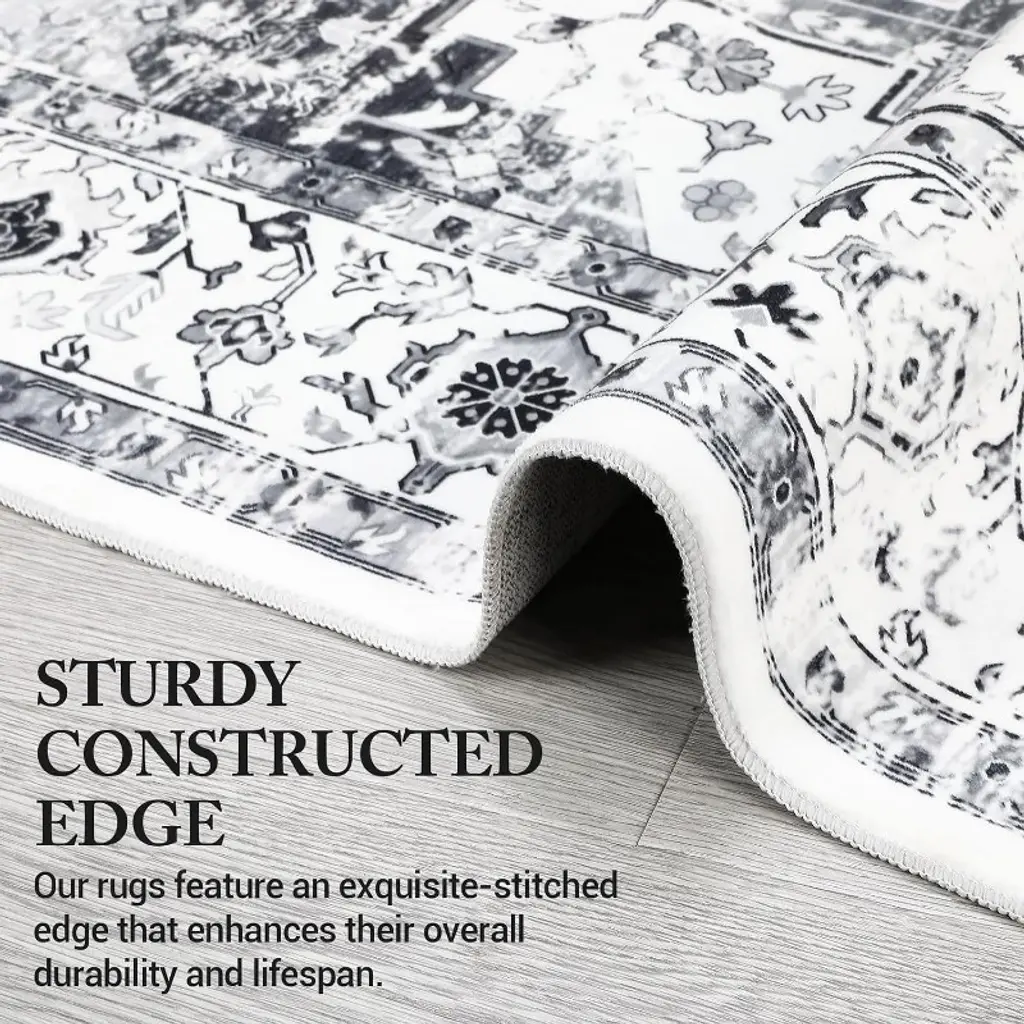 Coucheta 4X6ft (122x183cm) Washable Rug, Ultra-thin Non-slip Soft Vintage Throw Carpet, Stain & Wear Resistant For Various Rooms Gray