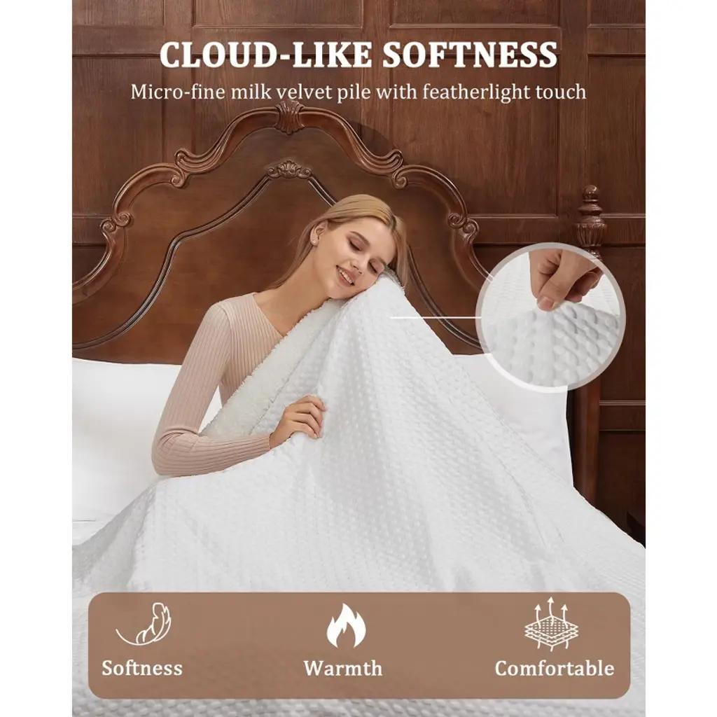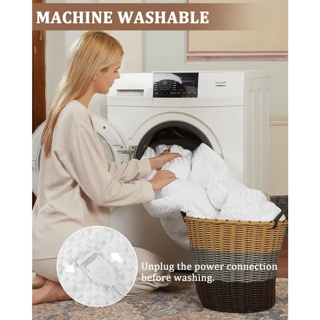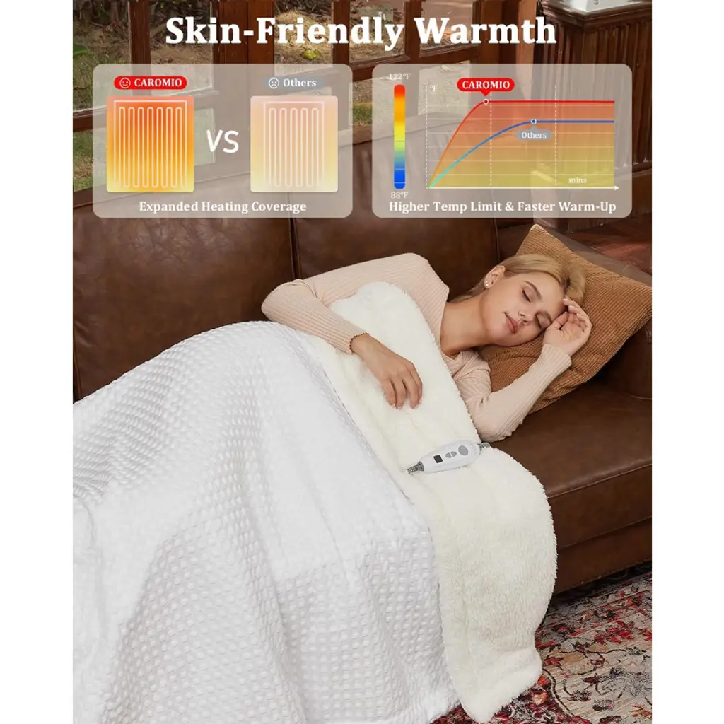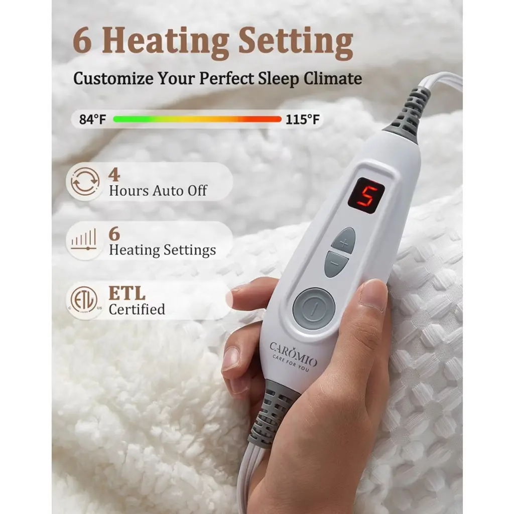 This waffle weave heated blanket is like a warm, cozy hug on cold days—velvet on one side and soft plush on the other, it feels luxuriously soft while adding a stylish touch to your couch or bed. It heats up fast (in just 15 minutes!) with 6 settings, reaching 115°F for extra warmth—10°F more than regular electric blankets.You can relax without worry, too: it’s ETL certified, with smart wires that keep temperature in check, plus a 4-hour auto-shutoff to save energy. The LCD controller makes adjusting warmth easy, and the long cord lets you use it anywhere in the house. If it needs a clean? Just detach the controller and toss it in the wash. Whether you’re reading, watching TV, or napping, it turns ordinary moments into cozy, comforting ones.