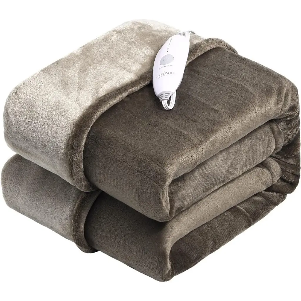 Coucheta 50"x60" Reversible Heated Throw - Dark/light Brown, 5 Heat Settings & 4H Auto Shut Off, Soft Flannel, Electric Blanket For Couch