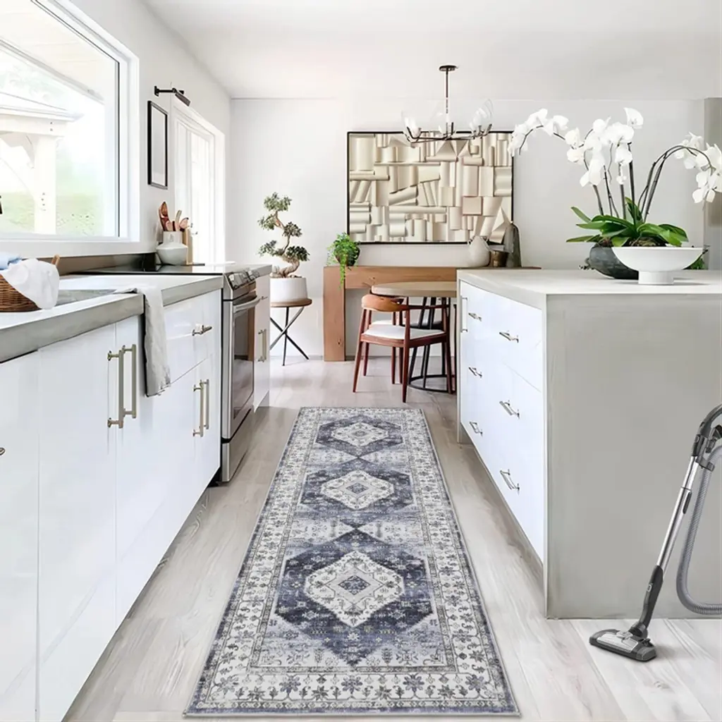 Introducing our Washable Accent Area Rug, the perfect addition to enhance the comfort and style of your living room, dining room, or any indoor space. This low pile rug features a beautiful Oriental print that adds a touch of elegance and sophistication to your home decor. Crafted with soft, durable materials, it offers a cozy feel underfoot while being easy to maintain. Key Features: 1. Washable and Easy to Clean: Designed for everyday living, this rug is machine washable, allowing you to keep it fresh and spotless with minimal effort. 2. Non-Slip Backing: Equipped with a non-slip floor grip, this rug stays securely in place, providing safety and stability on various floor surfaces. 3. Low Pile Design: The low pile construction makes it easy to walk on and ideal for high-traffic areas, while also being gentle on your feet. 4. Soft and Foldable: Made from soft materials, this rug is comfortable to walk on and can be easily folded for storage or transport without losing its shape. 5. Versatile Use: Perfect for living rooms, dining rooms, bedrooms, or any indoor area where you want to add warmth and style. Upgrade your home with this stylish and practical accent area rug that combines beauty, comfort, and convenience. Whether you're looking to refresh your space or add a cozy touch, this Oriental print rug is an excellent choice for modern living.