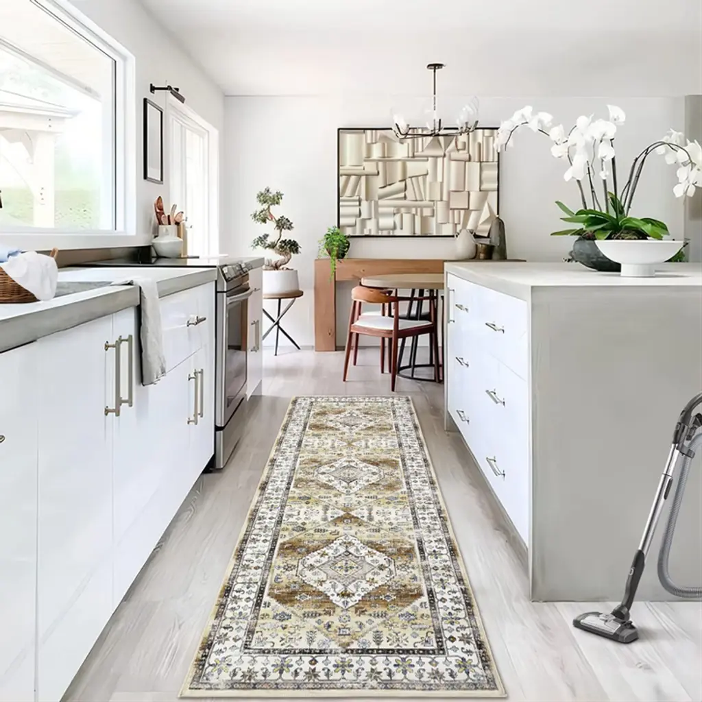 Introducing our Washable Accent Area Rug, the perfect addition to enhance the comfort and style of your living room, dining room, or any indoor space. This low pile rug features a beautiful Oriental print that adds a touch of elegance and sophistication to your home decor. Crafted with soft, durable materials, it offers a cozy feel underfoot while being easy to maintain. Key Features: 1. Washable and Easy to Clean: Designed for everyday living, this rug is machine washable, allowing you to keep it fresh and spotless with minimal effort. 2. Non-Slip Backing: Equipped with a non-slip floor grip, this rug stays securely in place, providing safety and stability on various floor surfaces. 3. Low Pile Design: The low pile construction makes it easy to walk on and ideal for high-traffic areas, while also being gentle on your feet. 4. Soft and Foldable: Made from soft materials, this rug is comfortable to walk on and can be easily folded for storage or transport without losing its shape. 5. Versatile Use: Perfect for living rooms, dining rooms, bedrooms, or any indoor area where you want to add warmth and style. Upgrade your home with this stylish and practical accent area rug that combines beauty, comfort, and convenience. Whether you're looking to refresh your space or add a cozy touch, this Oriental print rug is an excellent choice for modern living.