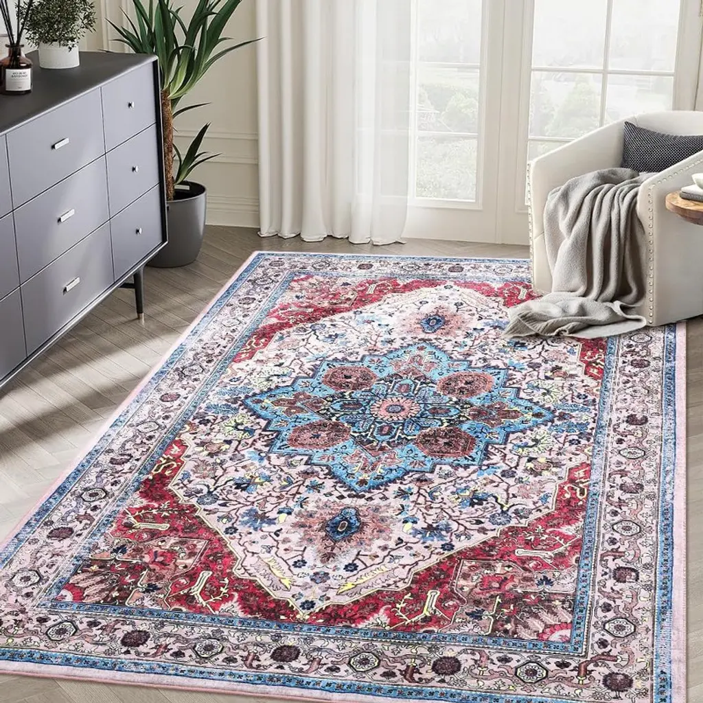 Coucheta Washable Accent Area Rug Non-slip Floor Carpet Low Pile Oriental Print Throw Rugs