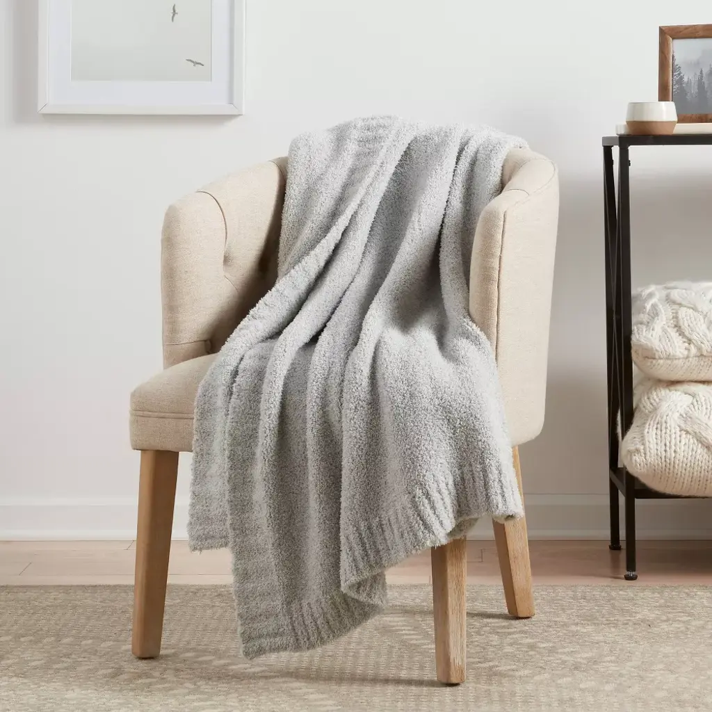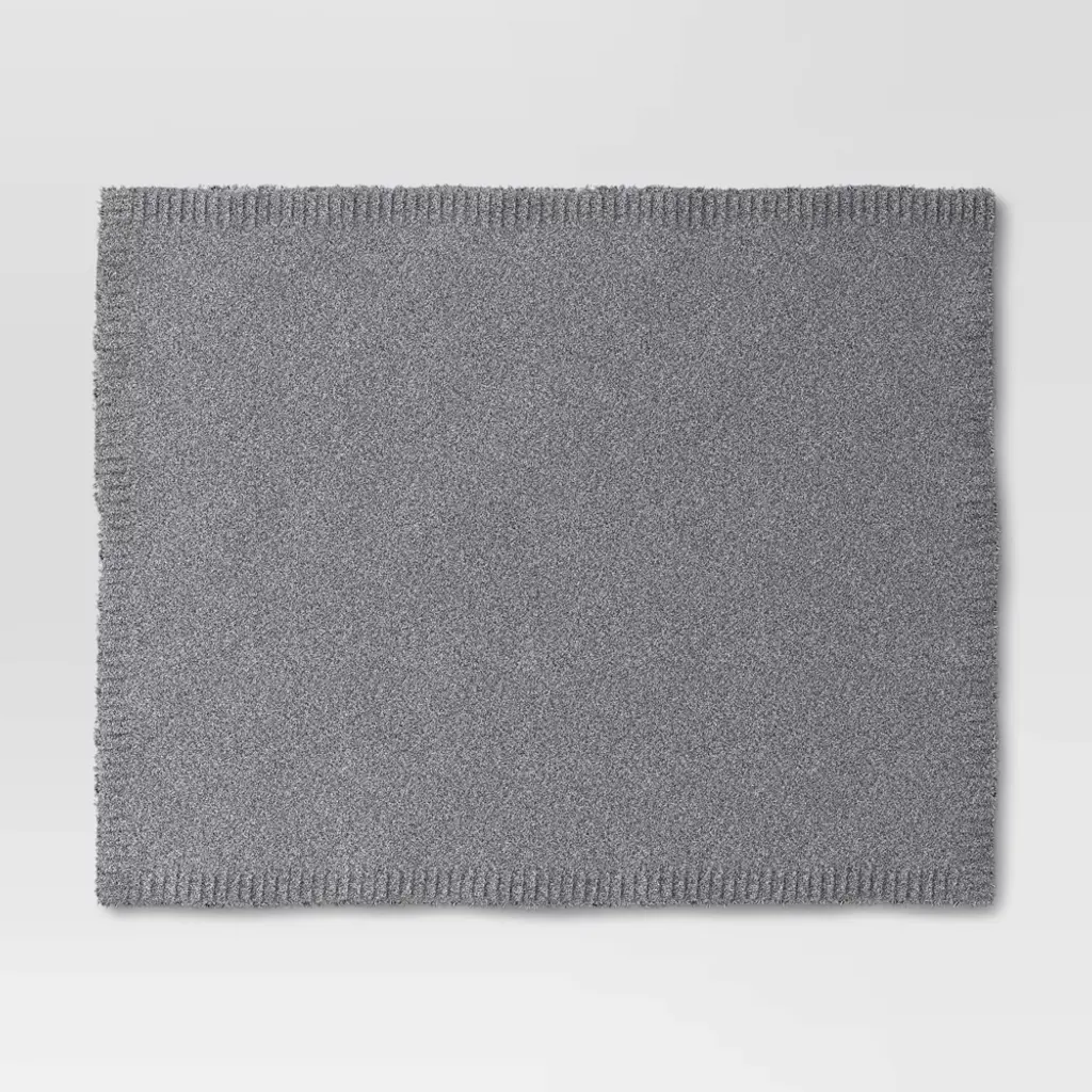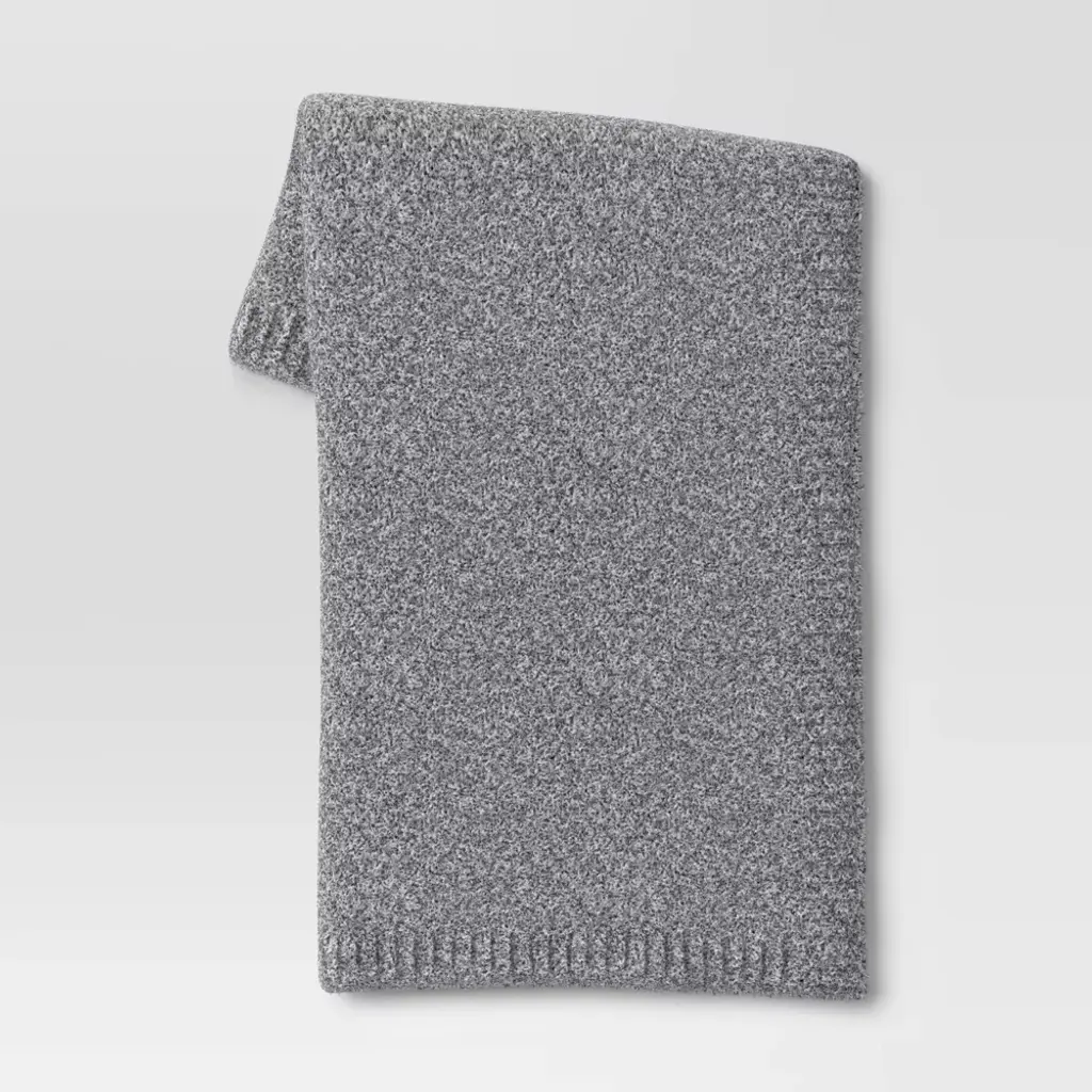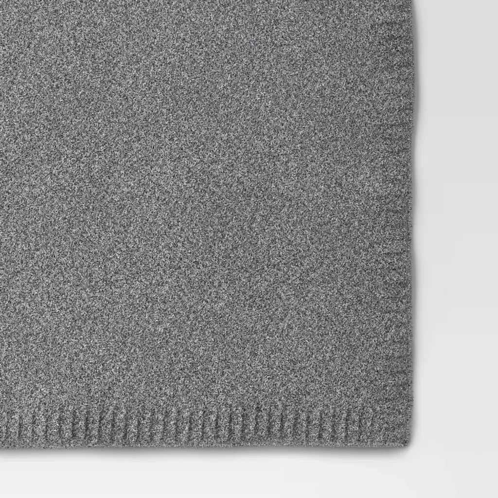 Add a warm, welcoming look to your home with the Cozy-Knit Heathered Throw Blanket from Threshold™. Featuring a midweight fabric construction, this solid-hued blanket is made of a soft fabric with a fuzzy knitted texture in a heathered finish for an eye-catching look, making it perfect for adding snug style to your interior space. It has a coordinating rib-knit border that gives it enhanced chic elegance. Lay it cascading over the back of a sofa or couch in your living room, keep it folded at the foot of your bed or wrap it around yourself when curling up in your fave seating spot with a good read. Threshold™: Looks like home, feels like you.