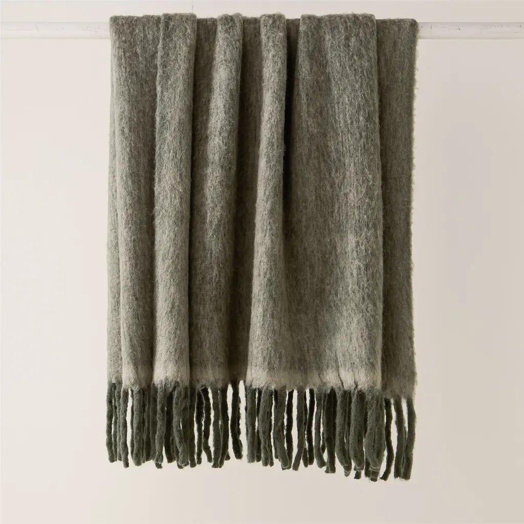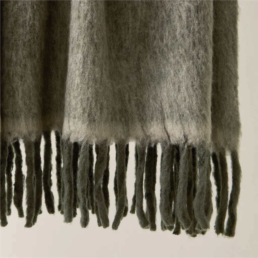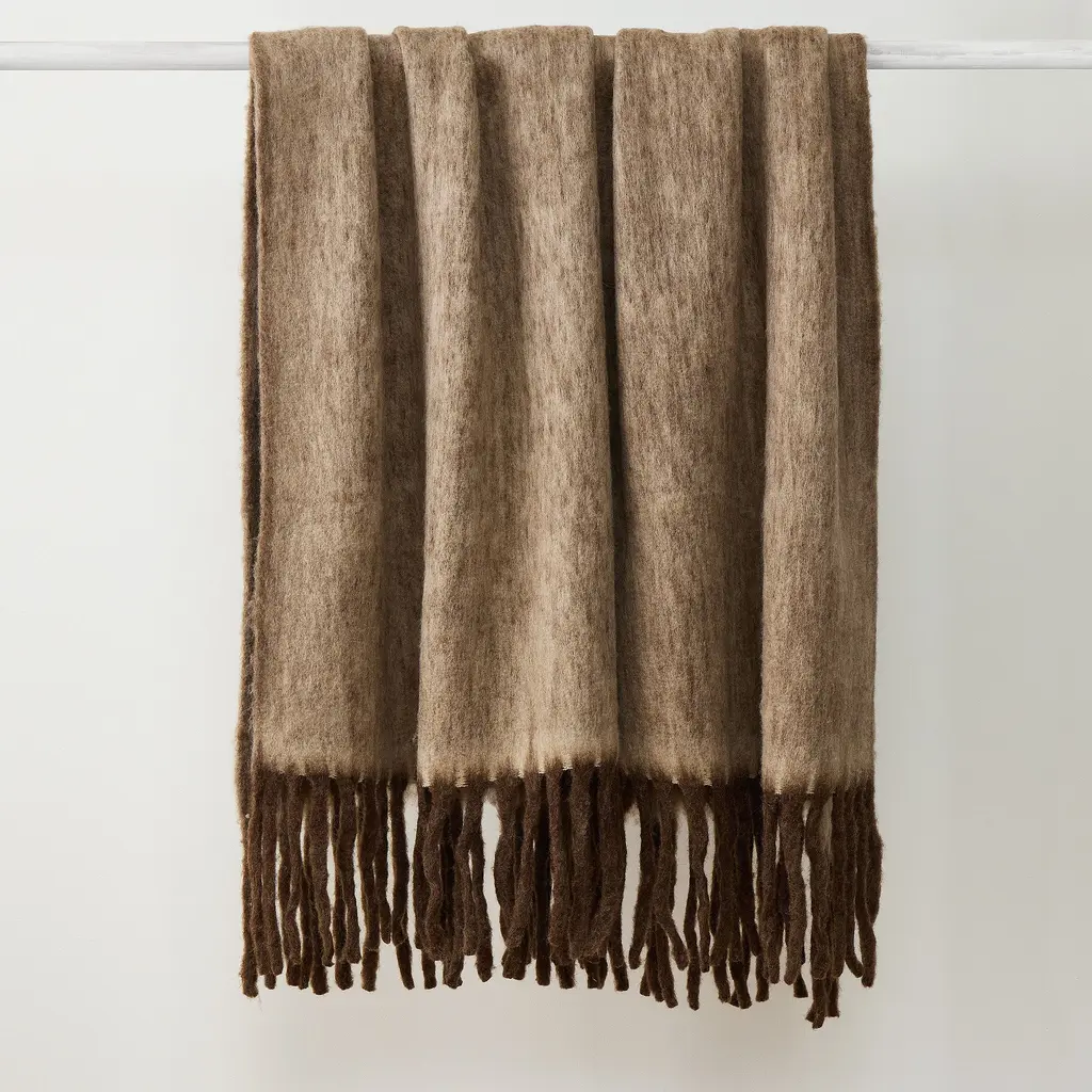 Warm as genuine mohair yet 100% faux. Cross dye pattern for a relaxed feel. A luxurious, comfy layer you'll want to take everywhere. Fringe detailing for added style.