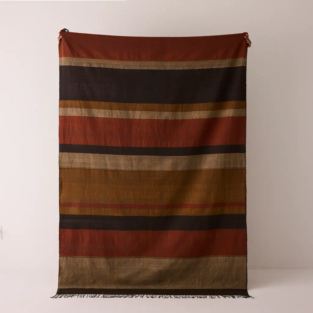 Wrap yourself in comfort you can truly feel good about. Whether you’re curled up on the sofa or adding a layer of texture to your bed, the Dalol Throw by Sabahar brings effortless style and comfort to your home. Made exclusively for GOODEE, this handwoven throw showcases the beauty of Ethiopian textile traditions with a natural palette of flax, copper, and mocha that feels timeless yet contemporary. Crafted from locally sourced, hand-spun cotton, it’s soft, breathable, and ethically made to support artisans with fair wages and meaningful opportunities.