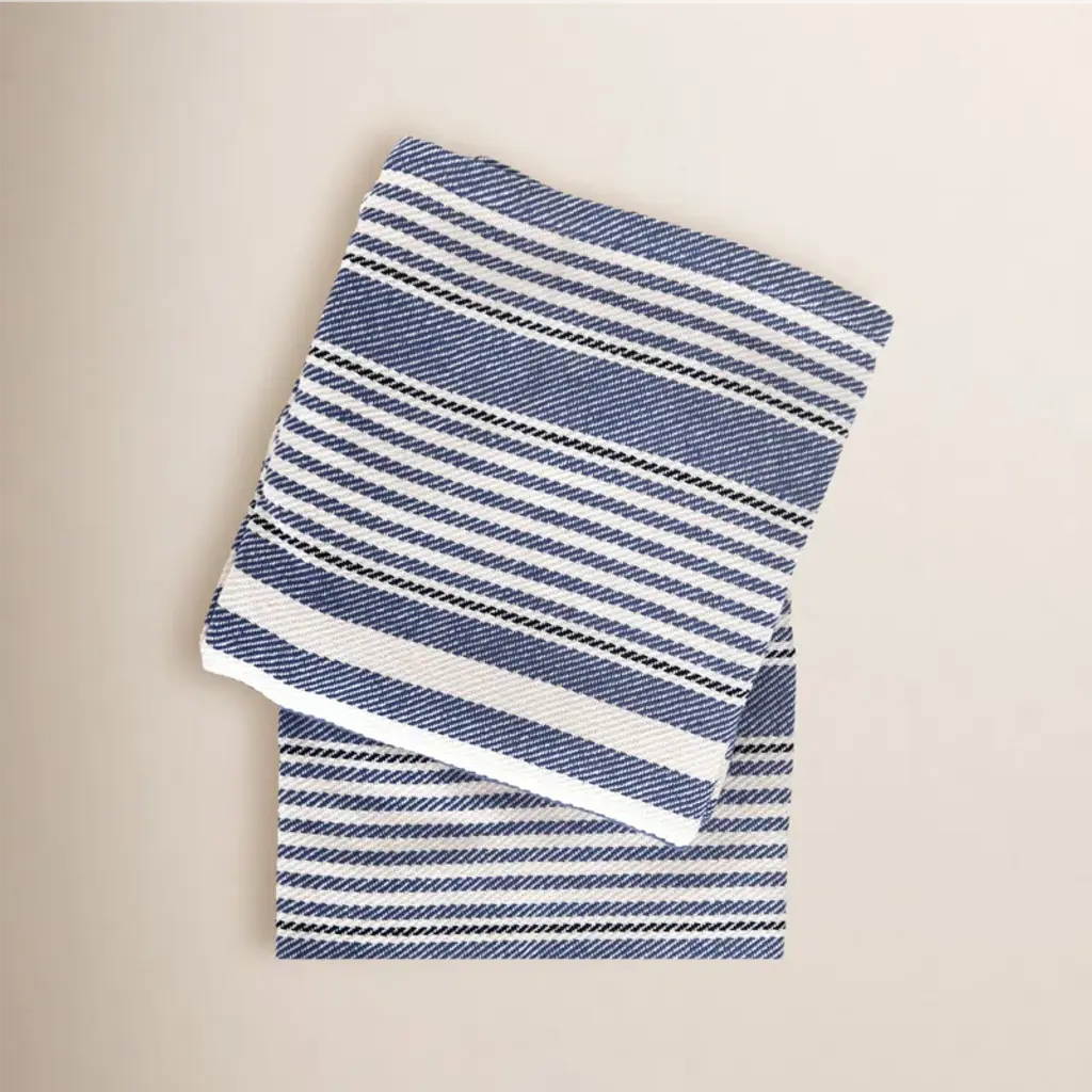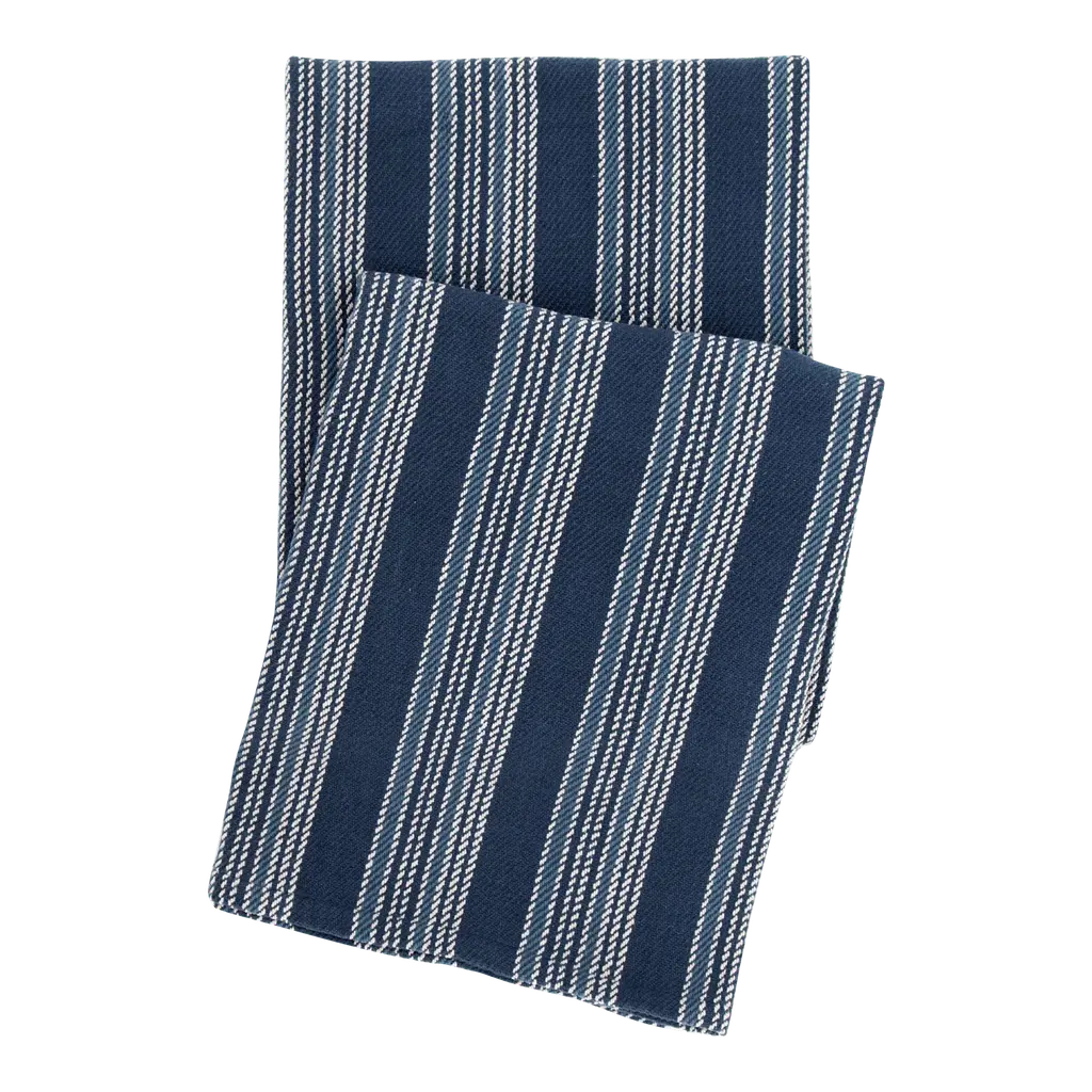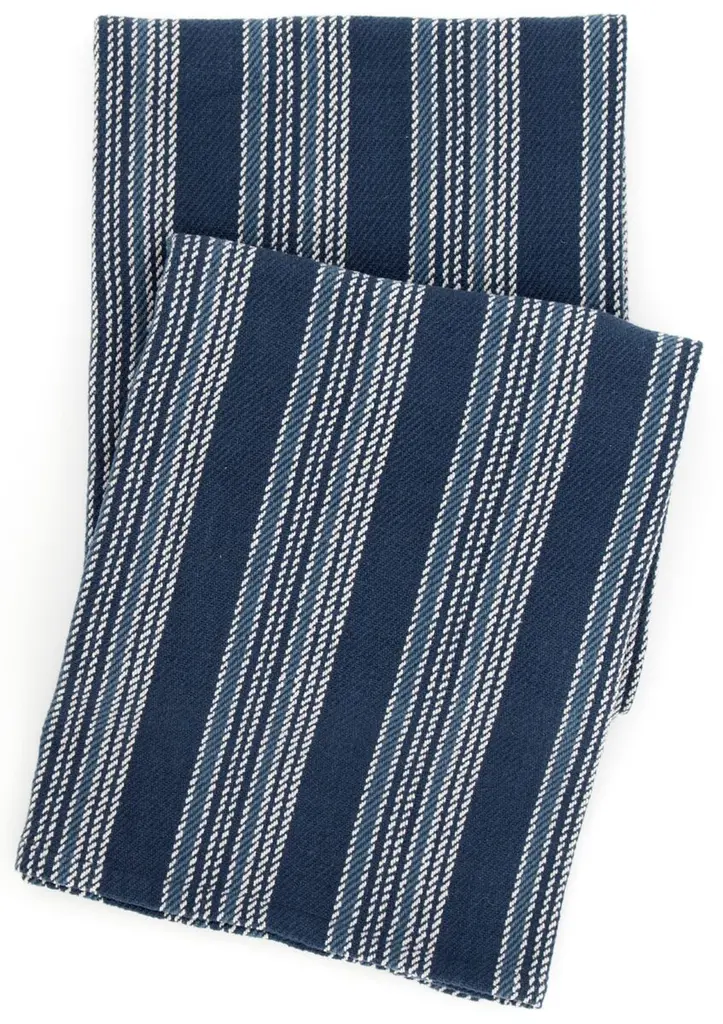 Based on an antique textile found at Brimfield, this woven cotton throw has a rich mix of navy, indigo, and sky. Pop it against white and ivory, or layer seamlessly with brighter shades. 100% Cotton. Machine wash cold, tumble dry low. Do not bleach.
