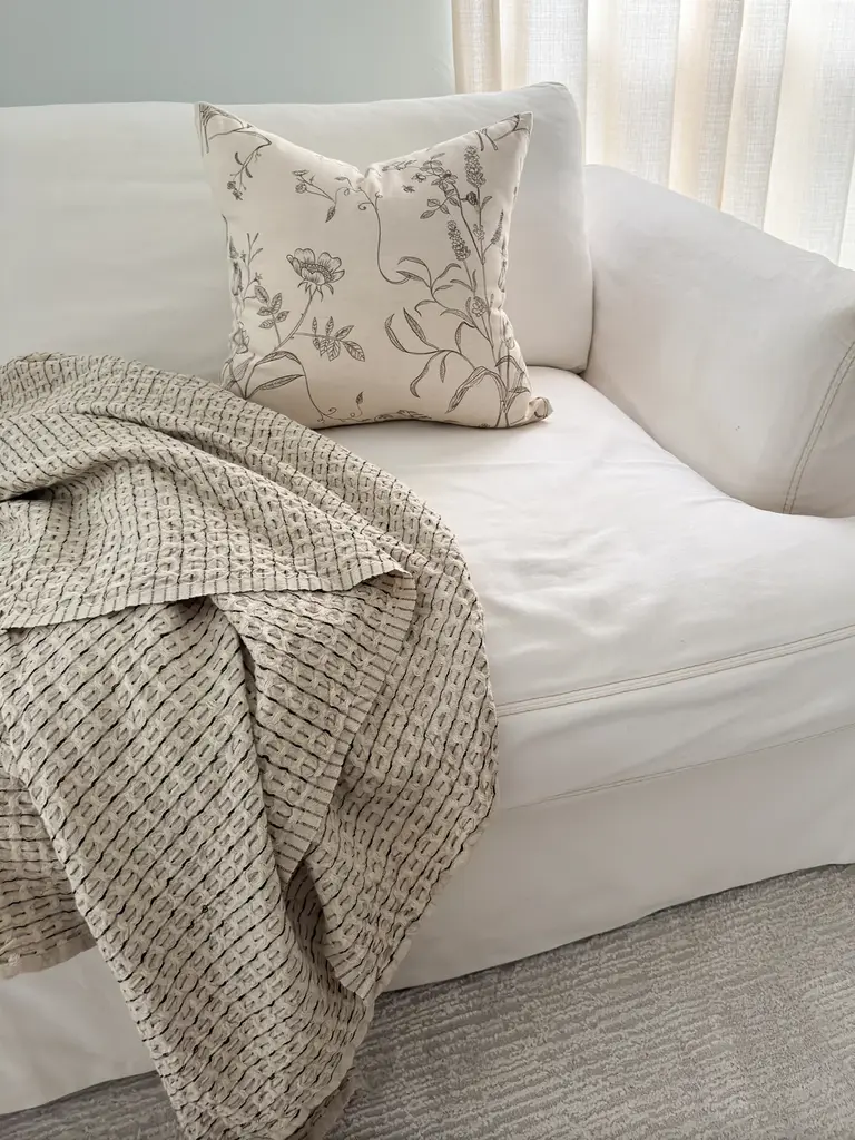 The Desert Linen Waffle Throw effortlessly transitions from the living room to the bedroom, offering comfort, versatility, and a luxurious feel. Crafted in Turkey from high-quality, soft fabric, it’s sure to become your favorite throw. Color: Beige, Terracotta, Olive Green, Black Size: 50"x70" Material: 100% Linen Made in Turkey. Machine Wash Delicate with like colors. Tumble Dry Low. Low Iron.