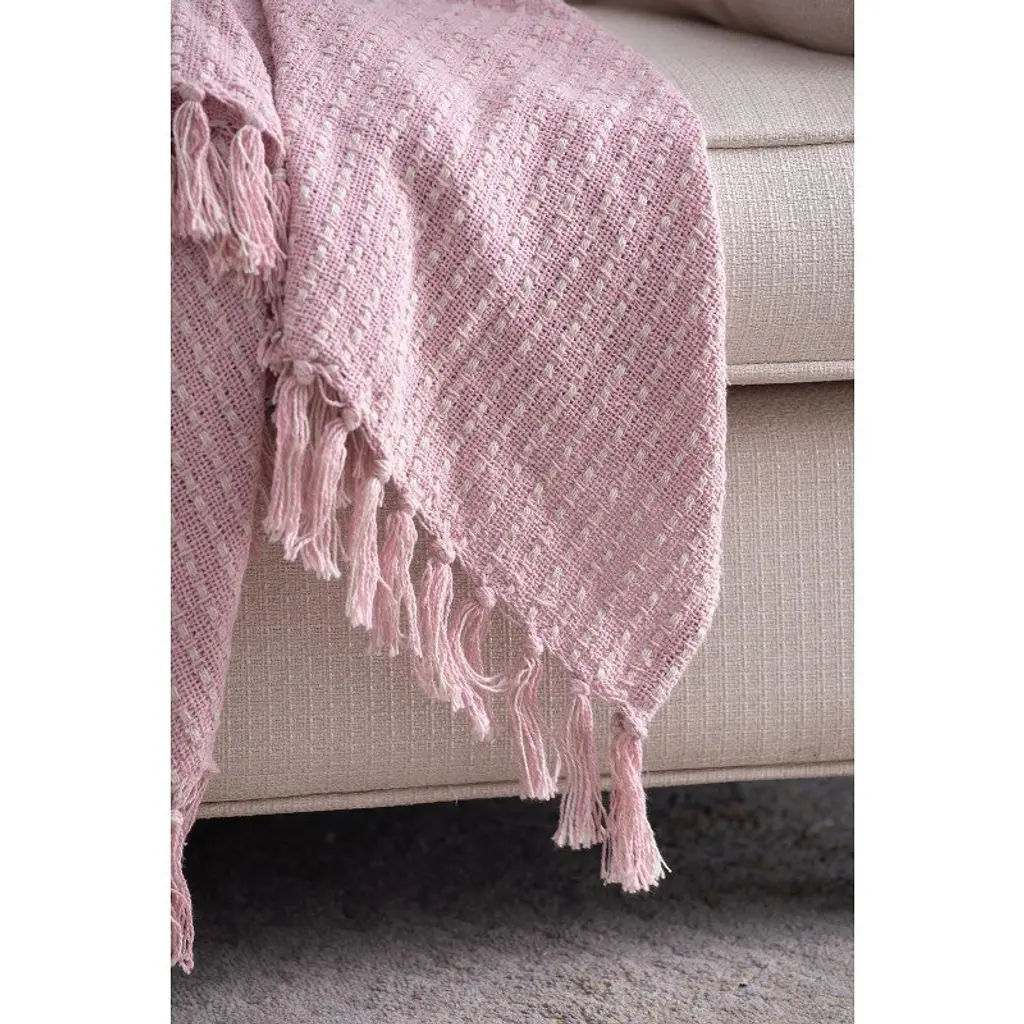 Dexmalle Decorative Pink And Tan Cotton Throw Blanket With Tassels, 2 Pack
