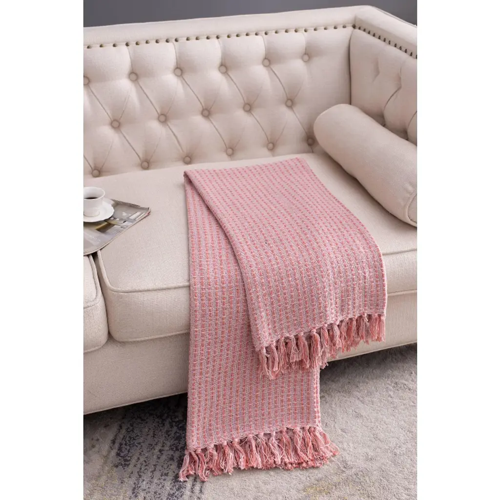 Dexmalle Decorative Pink Cotton Throw Blanket With Tassels,2pack