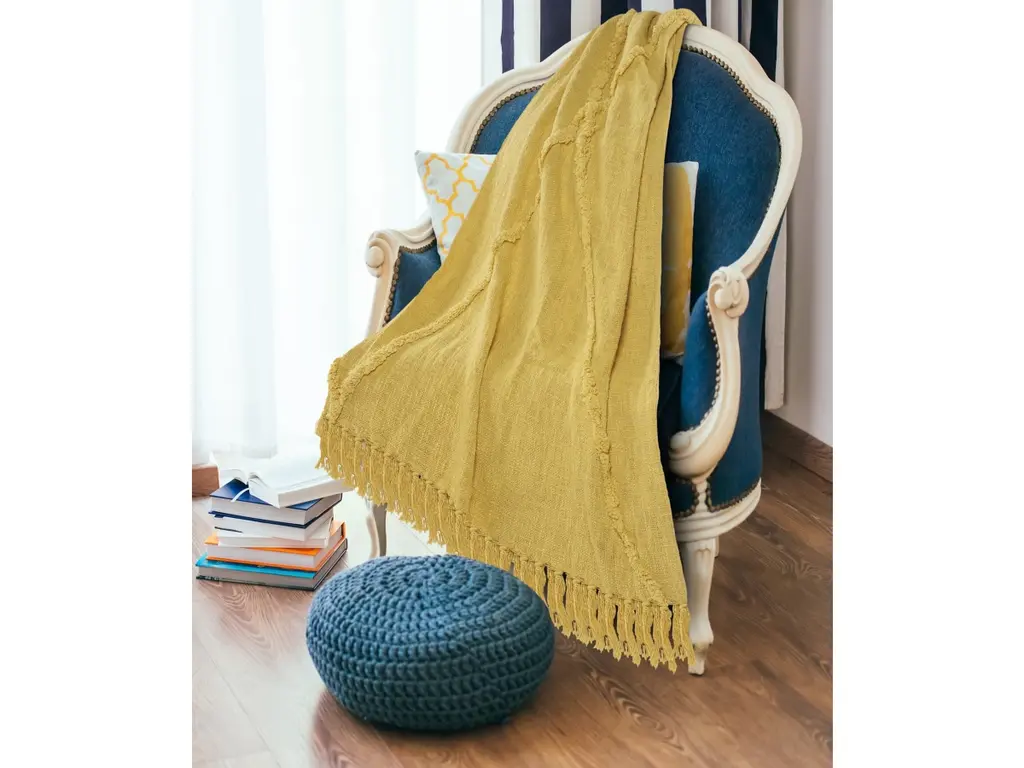 Wrap yourself in luxurious comfort with this handwoven throw blanket. Made in India using 100% cotton, this cozy blanket features tufted diamond designs and fringe accents, adding a touch of texture and style to any space. The soft, breathable cotton material provides warmth without weighing you down, making it perfect for snuggling up on chilly evenings. Whether you're curling up with a book or watching your favorite movie, this beautiful throw blanket is sure to become your go-to accessory.