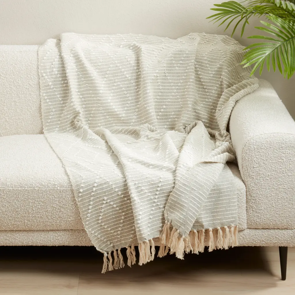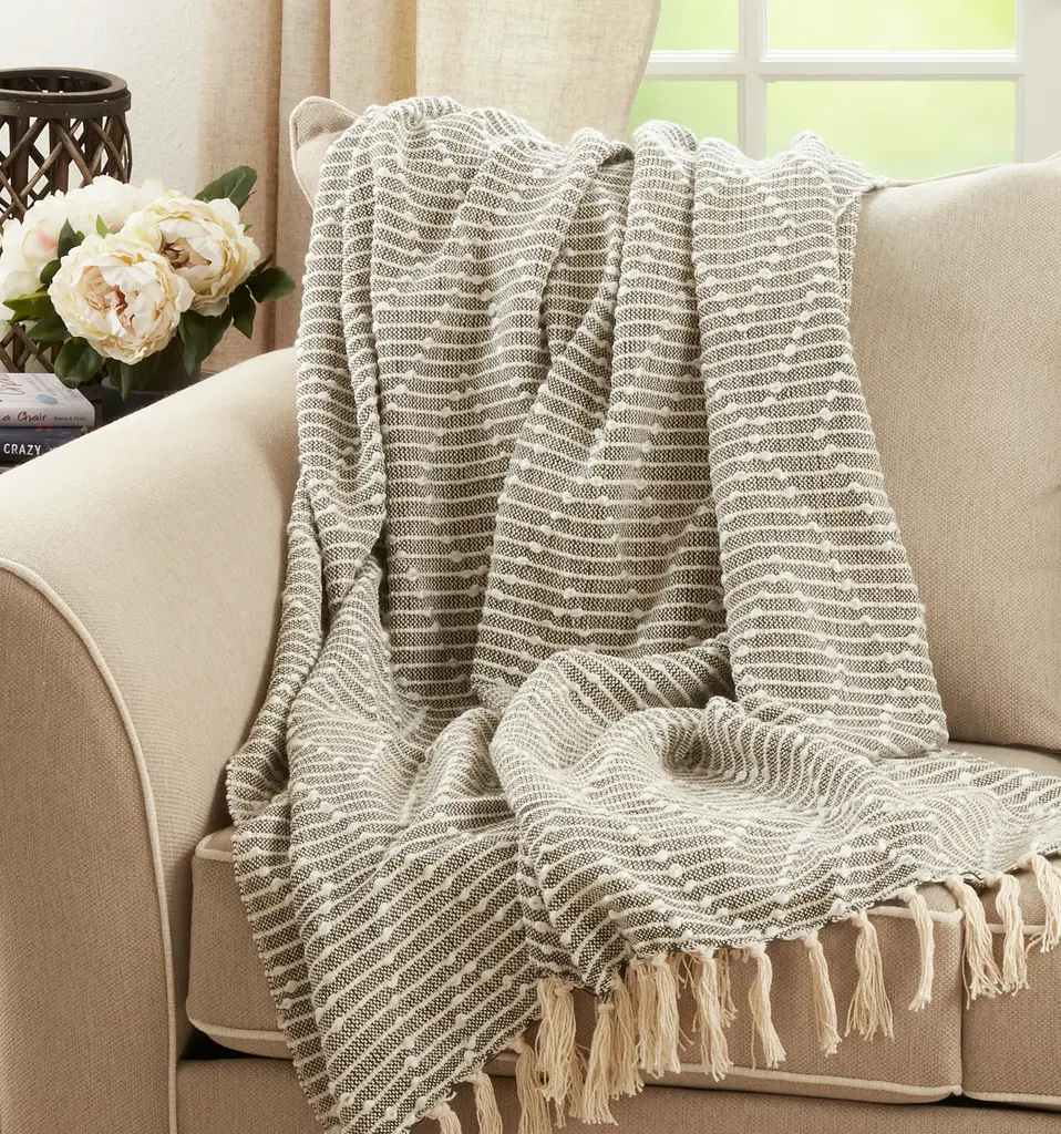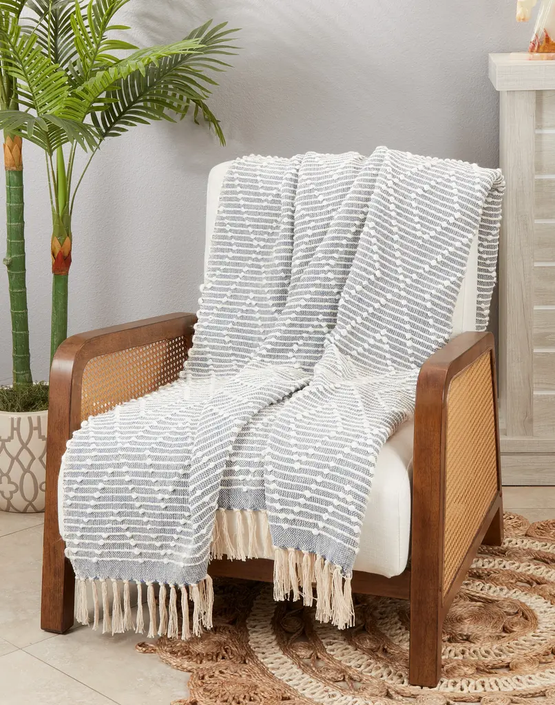 Featuring a dark color palette and a beautiful woven construction, this gorgeous Diamond Woven Throw Blanket is a wonderful addition to your home decor. It brings depth and contrast to your space, as well as a warm and soft embrace on cold evenings. It's very easy to pair with a wide range of accent pillows.
