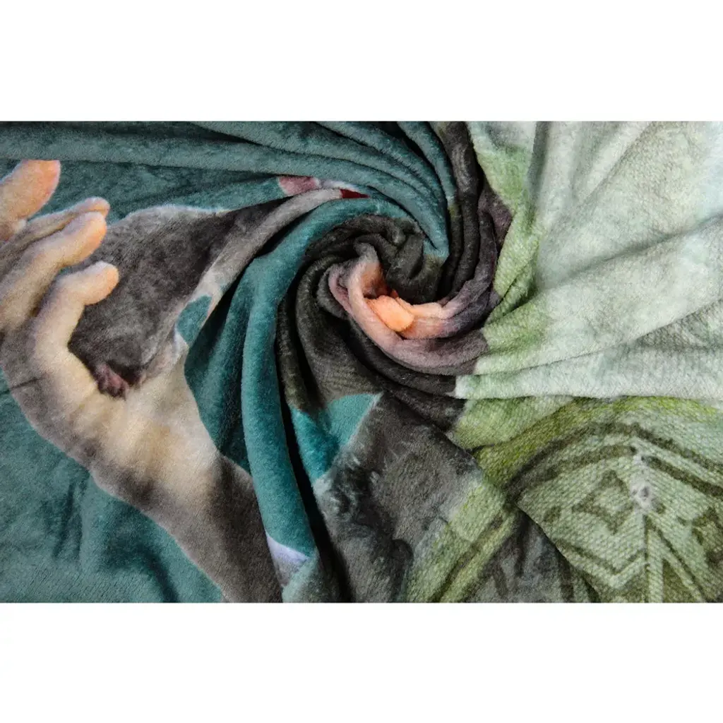 Encanto is a Disney animated film that revolves around a young married couple, Pedro and Alma who are forced to flee their home in Columbia with their three infants. The story picks up 50 years later as a new village thrives under magical gifts. This blanket features a "We Don't Talk About Bruno" design. This silk touch blanket is as soft as plush blankets get! The soft-touch feel is much smoother and softer than your average plush throw and is great to snuggle up with! Made of 100% polyester. It is a one-sided print blanket.