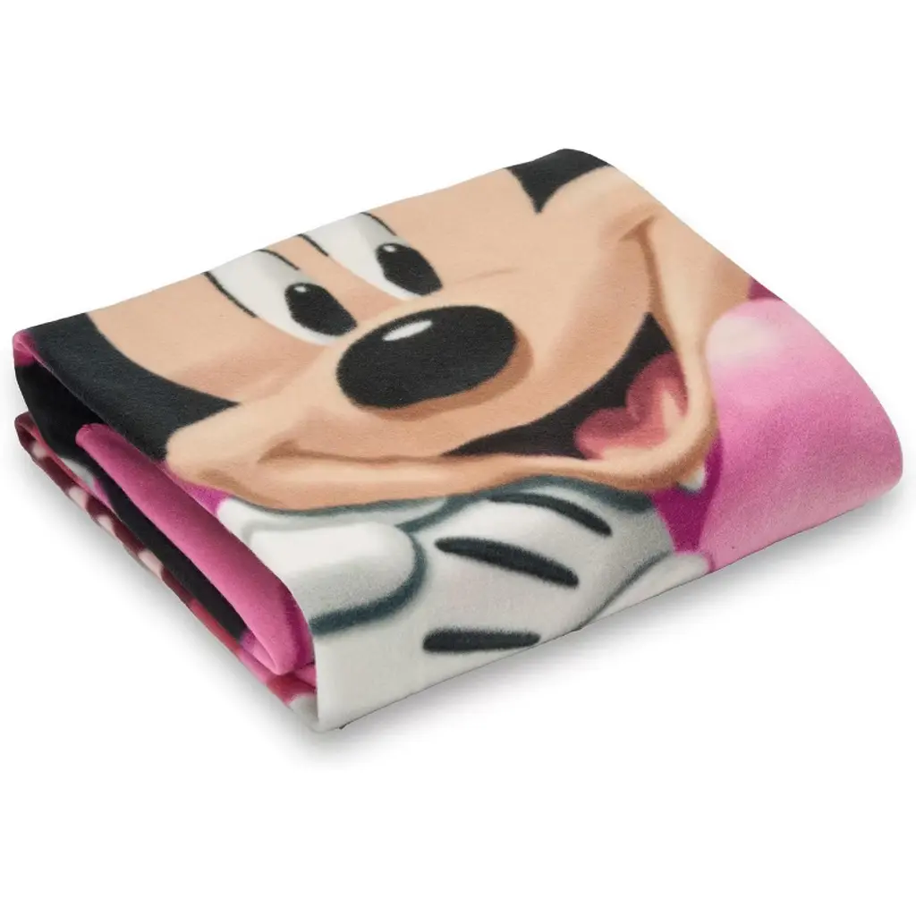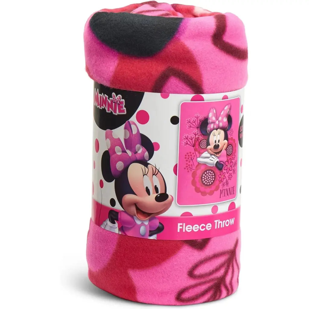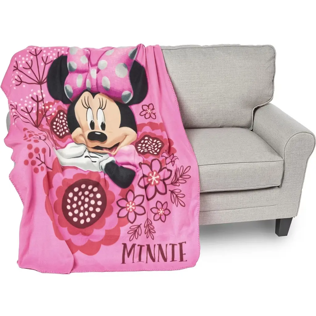 Wrap yourself in comfort with this Minnie Mouse fleece throw, featuring a bright and cheerful design from Disney Junior. Minnie’s signature look is front and center, complete with her iconic bow and floral accents that bring playful energy to any room. Whether spread across a bed or draped on a chair, the design adds warmth. Made from soft and lightweight polyester, this 45" x 60" blanket is ideal for daily use around the house or on the move. Its machine-washable durability ensures it stays clean and cozy without extra effort. A fun and functional addition to any household, this blanket blends comfort, character, and convenience in one easy piece.