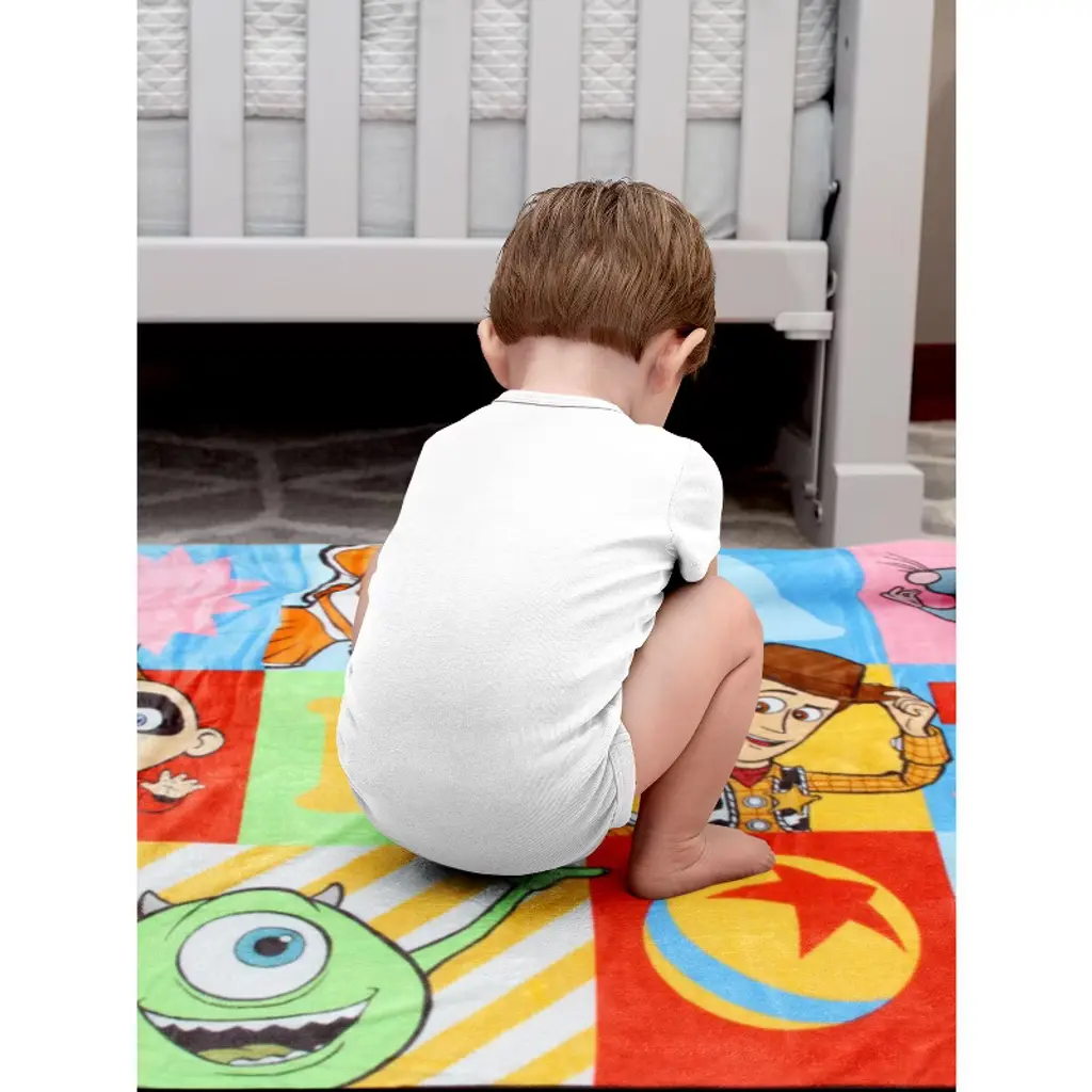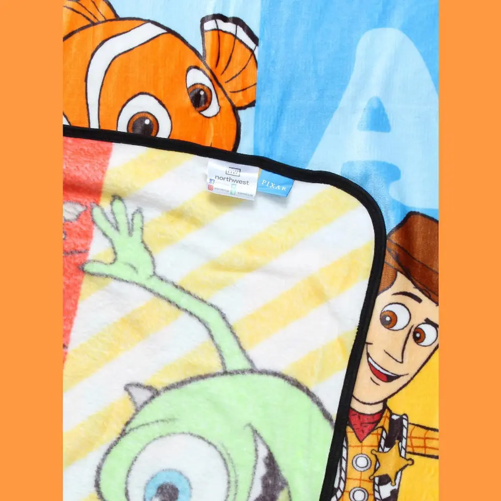 GREAT Disney Pixar merchandise! Ever since Disney introduced Pixar they have blessed us with some of the best-animated films to ever come out like Toy Story, Finding Nemo, Monsters Inc., Inside Out, Up, The Incredibles, Wall-E, Cars, Ratatouille, A Bug's Life, and so many more. This Pixar blanket pays tribute to many of those hits with a quite looking pattern and characters like Bo-Peep, Nemo, Woody, Mize Wazowski, Wall-E, Eve, Remy, and Jack-Jack, This silk touch blanket is as soft as plush blankets get! The silky touch feel is much smoother and softer than your average plush throw, and perfect to snuggle up with! Made of 100% polyester.These are the best!