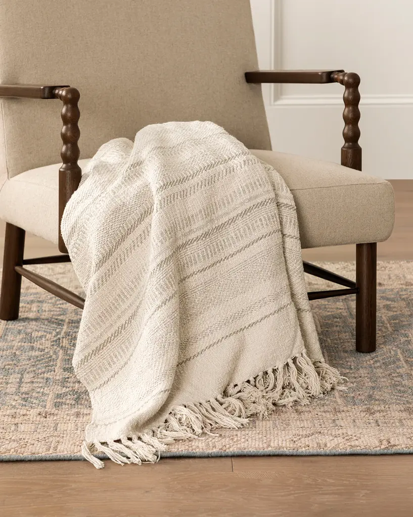 Hand-woven with a cotton blend, the Donahue Striped Throw is both beautiful and functional. As a light layer, its cool color palette finishes off your space with an effortless look and feel.