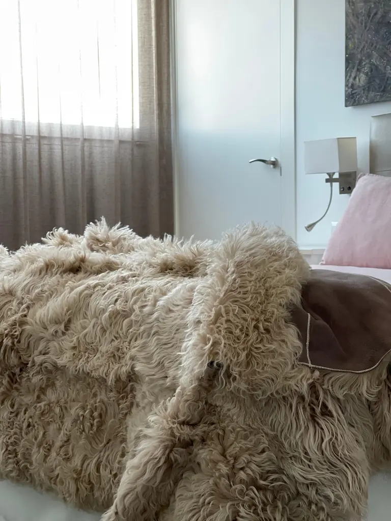 Used as a throw on a sofa and king bed or as a luxury queen bedspread, its exquisite softness and light appearance will bring warmth and refinement to your interior. Exclusive home accessory, custom made by order. There is not a piece same to another. The product you will receive may have differences with the product pictured as it is a natural material and no two will be exactly alike. Each fur fabric is unique. Slight variation in size dimensions. Approximately 200 cm x 150 cm // 80 x 60 inches.Leathers are locally sourced in Spain and all are a sub-product from food industry. We have a precision sewing team, and we hand tailored these on demand, all are handcrafted by fur artisans in Spain.Even all our leathers have strictly permitted sourcing origins and are considered as unforbidden furs.