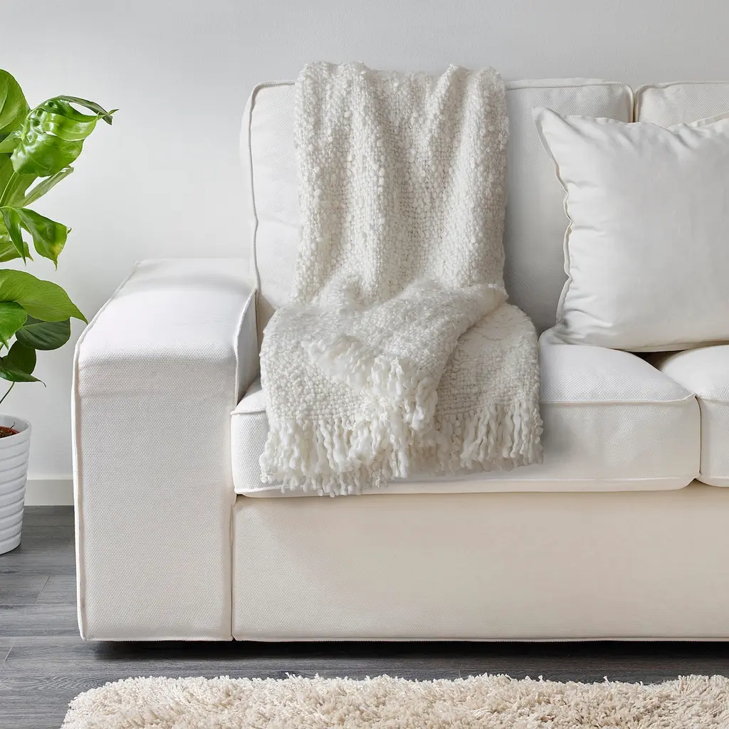 DYSTERMAL Throw - off-white 51x67 ". The acrylic throw is just as warm, soft and comfortable as wool, but is more easy-care since it retains its shape and dries quickly after washing. Easy to keep clean since it is machine washable.