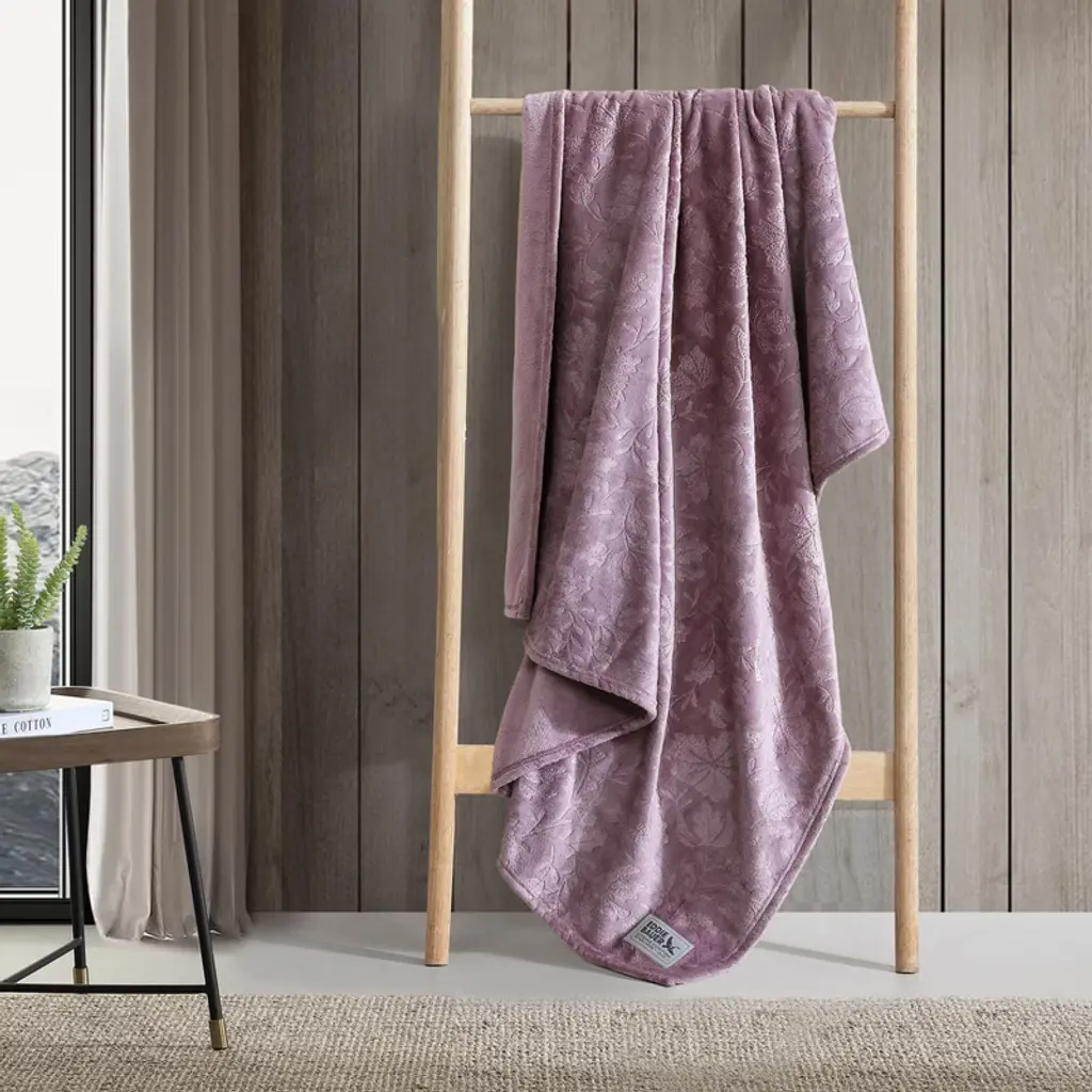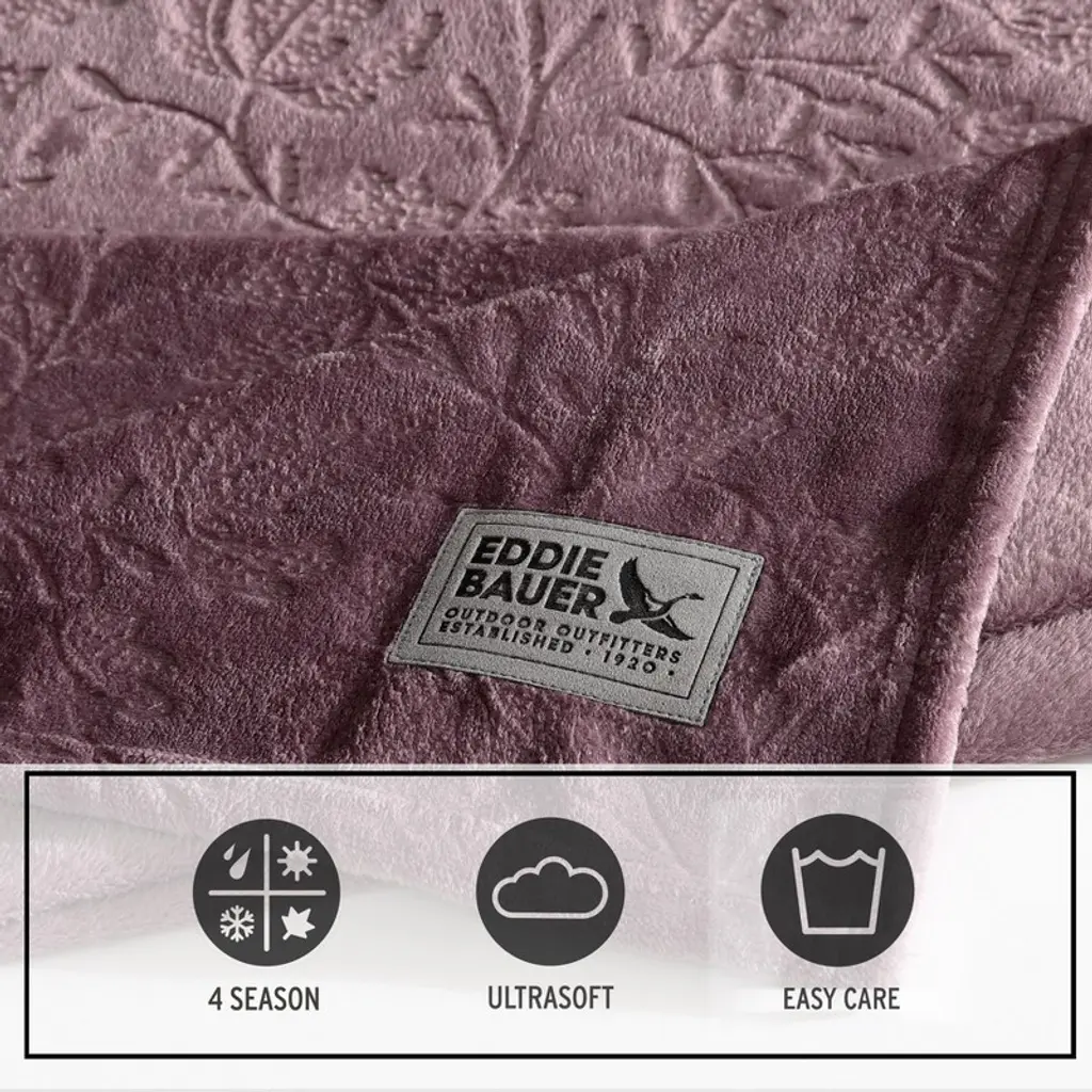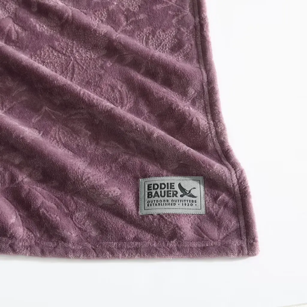 Eddie Bauer Woodblock Floral Purple Throw Blanket
