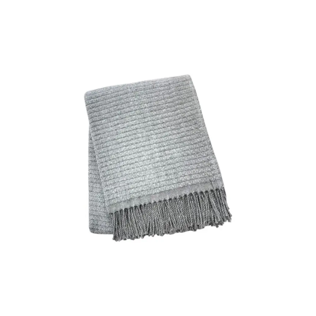 This throw adds a pop of color and subtle textural interest by combining a variety of yarn types and finishing techniques.