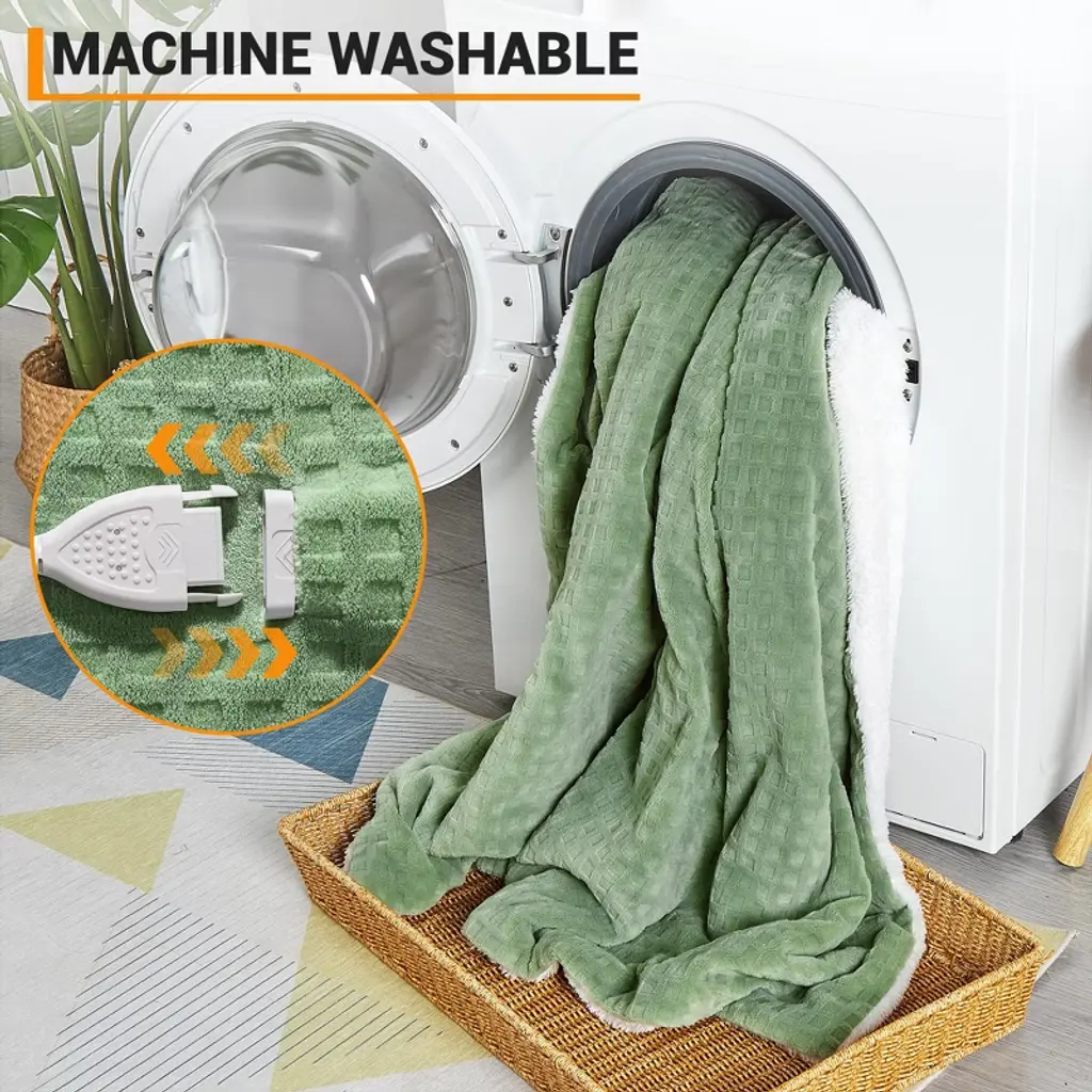 Stay warm and comfortable with this electric blanket featuring ultra-soft flannel on one side and cozy faux shearling on the other. Handheld controllers let you set temperature easily, with five heat levels and time setting. Fast and safe heating, ETL certification, and machine washable design make this heated blanket a perfect choice for effortless, reliable warmth. Note:Please unplug the power connection and remove the controller before washing the blanket.Only use the electric blanket with the included controller for safety and proper function.Do not use the heated blanket while it is folded, bunched up, or covered by any other materials.Avoid using the electric blanket with infants, pets, or anyone sensitive to heat.