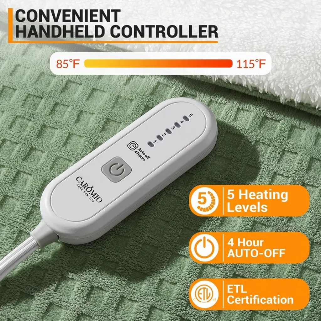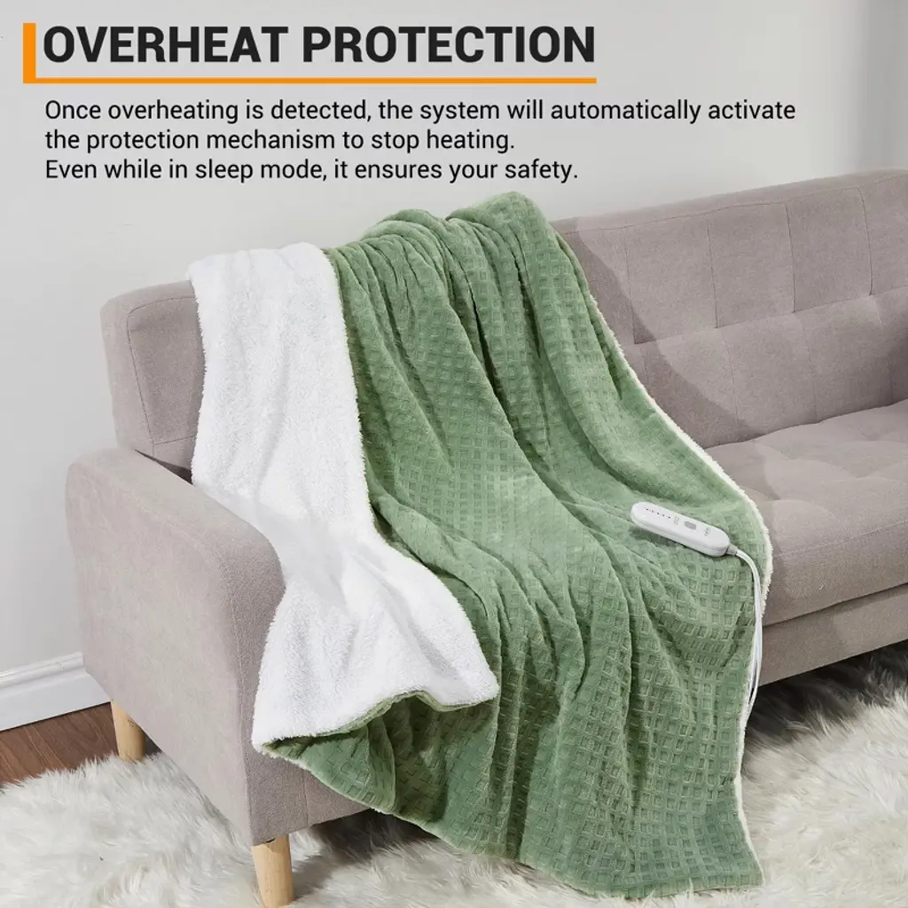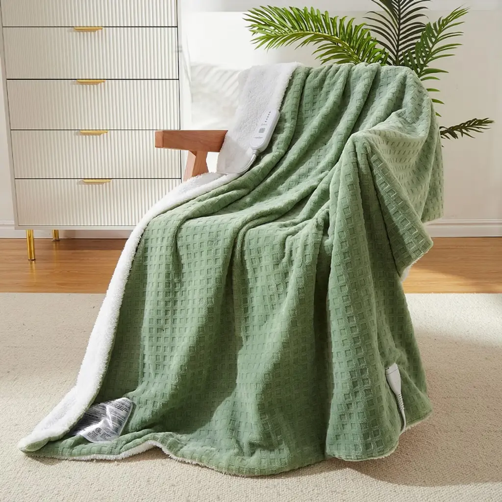 Electric Blanket Throw 50"x60", Waffle Heated Blanket With 5 Heating Levels And 4 Hour Auto-off, Machine Washable, Etl Certification, Green